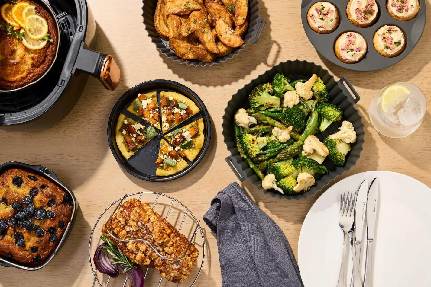 *_Maxwell & Williams: BakerMaker AirFry Cupcake Mould (21×4.8cm)_*Master your airfryer with the BakerMaker AirFry cupcake mould. Designed specifically to airfryer standards, it optimises the convection cooking method to give you moist, golden cupcakes and muffins every time. This handy mould is made from high-grade silicone, so it’s flexible and non-stick for quick cooling and smooth, easy turnout. Hard-wearing and dishwasher-safe, it’s the clever, no-fuss way to get the most out of your airfryer.*Features:** The BakerMaker AirFry cupcake mould is suitable for standard airfryer appliances – just lift in and lift out* 21×4.8cm tray contains 6 cupcake moulds with a smooth finish and stylish charcoal colour* Premium-grade silicone is durable and easy to clean and will give you years of beautiful bakes without warping, wearing or cracking* Designed for optimal heat distribution to ensure even cooking without drying or burning bases