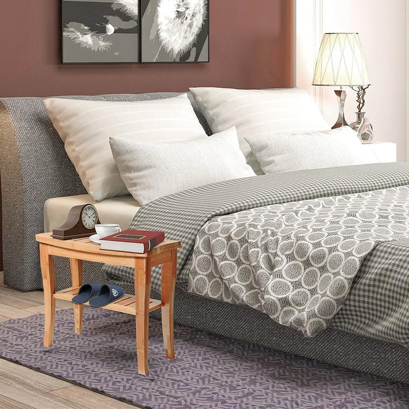 Transform your bathing experience with the STORFEX 2-Tier Bamboo Shower Stool. Designed to blend seamlessly with your bathroom decor, this stylish and practical stool provides a safe and comfortable seating option when you shower. High-quality bamboo construction with a waterproof coating ensures durability in wet environments, perfect for any bathroom environment.*Features:** *Durable and waterproof:* Made from premium bamboo with a waterproof coating, this shower stool withstands humidity and moisture, ensuring long life.* *Safe and stable design:* The wide base and non-slip PVC feet provide maximum stability, preventing slips or tipping during use, making it an ideal choice for the shower or bathtub.* *Versatile storage options:* Built-in storage shelves allow you to keep bathroom essentials organized and within easy reach. Perfect for storing soaps, shampoos, and other toiletries, enhancing your shower experience.* *Comfortable and stylish:* With a sleek bamboo finish, this stool is not only practical, but also adds a touch of elegance to your bathroom decor.* *IDEAL FOR ELDERLY & DISABLED PEOPLE:* Designed with safety and comfort in mind, this shower stool provides a reliable seating option for seniors or those with limited mobility.* *Colour:* Bamboo* *Material:* Bamboo* *Dimensions:* 47.5 × 26 × 43 cm* *Weight Limit:* 80kgs* *Weight:* 4.1 kg*Package Contents:** 1 x STORFEX 2-Tier Shower Stool* 1 x Screw Set