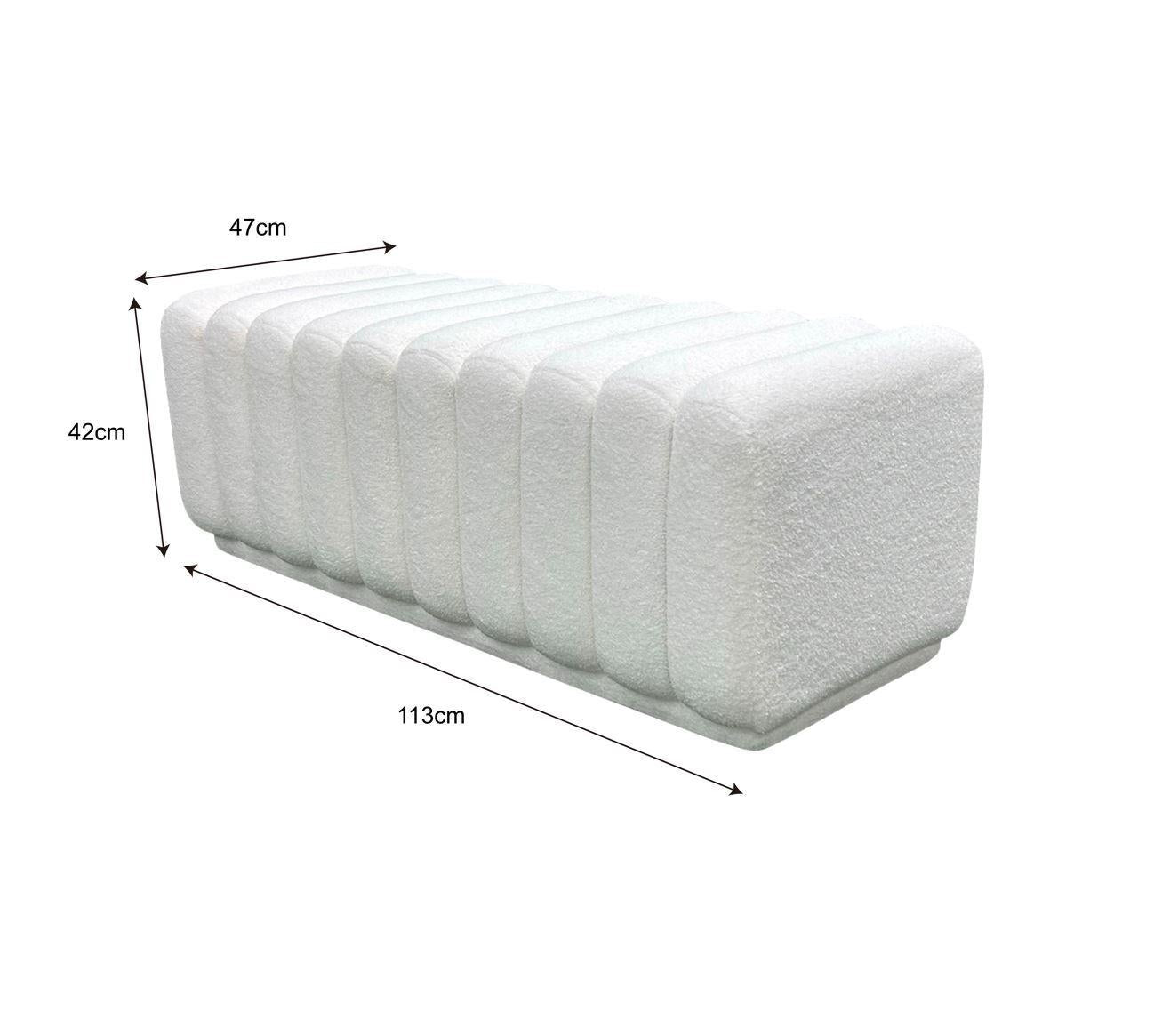 *_Fraser Country Boucle Bench – White_*Elevate your living space with the elegant *Fraser Country Boucle Bench – White*. This beautifully designed bench combines luxurious materials with modern functionality, making it a perfect addition to any home decor.*Features** *Luxurious White Bouclé Fabric*: The bench is upholstered in soft, textured white bouclé fabric, adding a touch of sophistication and comfort to your room.* *Adjustable Corners*: Designed with adjustable corners, this bench offers flexibility and adaptability to suit your seating needs.* *High-Density Foam Cushioning*: The bench features high-density foam, providing optimal support and comfort for long periods of use.*highlights** *Versatile Design*: This bench is ideal for various settings, whether at the foot of your bed, in the living room, or as an entryway statement piece.* *Durable and Comfortable*: The combination of high-density foam and quality bouclé fabric ensures that this bench is both durable and incredibly comfortable.* *Easy to Style*: The neutral white colour and modern design make it easy to integrate into a variety of decor styles, from contemporary to classic.* *Practical and Stylish*: Beyond its aesthetics, the Fraser Country Boucle Bench offers practical seating for any room.*Specifications:** *Product Dimensions*: 470 × 420 × 1130 mm* *Materials*: Bouclé fabric, wood, foam* *Color*: Elegant white* *Product Weight*: 9.9 kgAdd a touch of luxury and practicality to your home with the *Fraser Country Boucle Bench – White*. It's the perfect blend of comfort, style, and functionality.