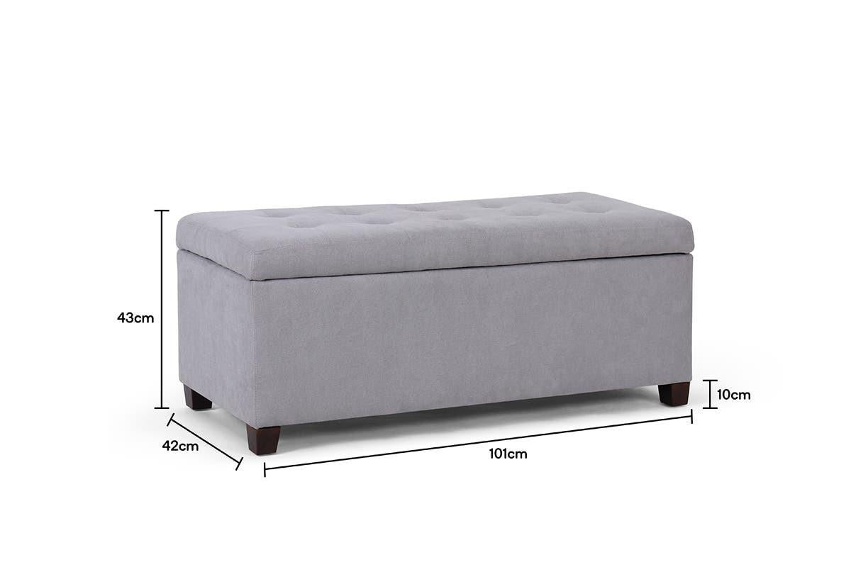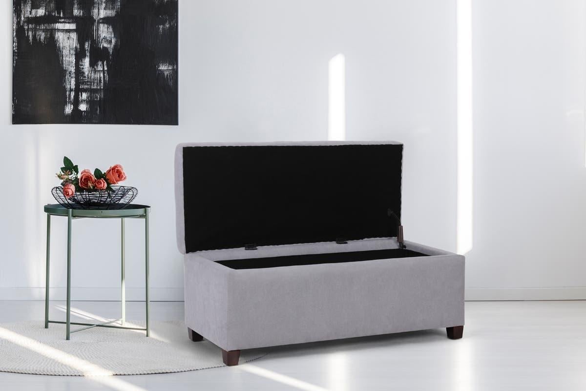Keep your lounge clutter free all while injecting a funky Scandinavian flair into your decor with the Shangri-La Storage Ottoman, the perfect all-in-one storage solution for your toys, books and boardgames.Generous storage spaceLinen-look fabric and feelScandinavian designSleek solid wood legsUltra durable with interior metal frame constructionPut your feet up after a long day!Blending value-focused pieces with refined design that doesn’t compromise on comfort or quality, transform your space into a decor haven with a Shangri-La Storage Ottoman.*Technical Specifications*Dimensions* Dimensions: 41.5 × 102 × 42cm* Weight: 10kgFeatures* Colour: Ash GreyGeneral* Leg Material: Rubberwood* Pattern: Solid* Upholstery Material: Fabric* Weight Capacity: 130kgWarranty* Manufacturer Warranty: 1 Year