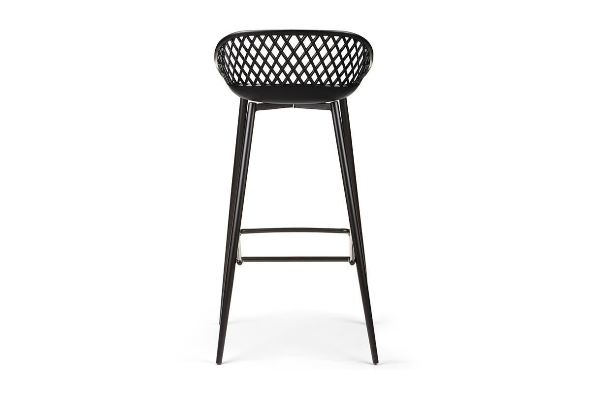 Entertain guests in style with this affordable, practical and sturdy set of two bar stools, enhancing any kitchen decor with its sleek, perforated design.Enhance your home with a sleek, modern flairBeautiful perforated backrestSturdy metal legs with wood print150kg Weight capacityBoasting a mid-height perforated backrest with curved sides and sturdy metal legs with a wood print, the Ovela Leerdam Set of 2 Bar Stools is all you need to wow guests with a stylish modern flair.Mix and match with other pieces from the Ovela Leerdam Collection here..Some assembly required, please see the user manual below for more information.*Technical Specifications*Dimensions* Back Height: Low* Dimensions: 49 × 50 × 96cm* Height of Seat: 75cm* Seat Height: Bar Height* Weight: 10kgFeatures* Colour: BlackGeneral* Frame Material: Metal* Material: Seat: Polypropylene | Legs: Metal* Seat Material: Plastic* Weight Capacity: 150kgWarranty* Manufacturer Warranty: 1 Year