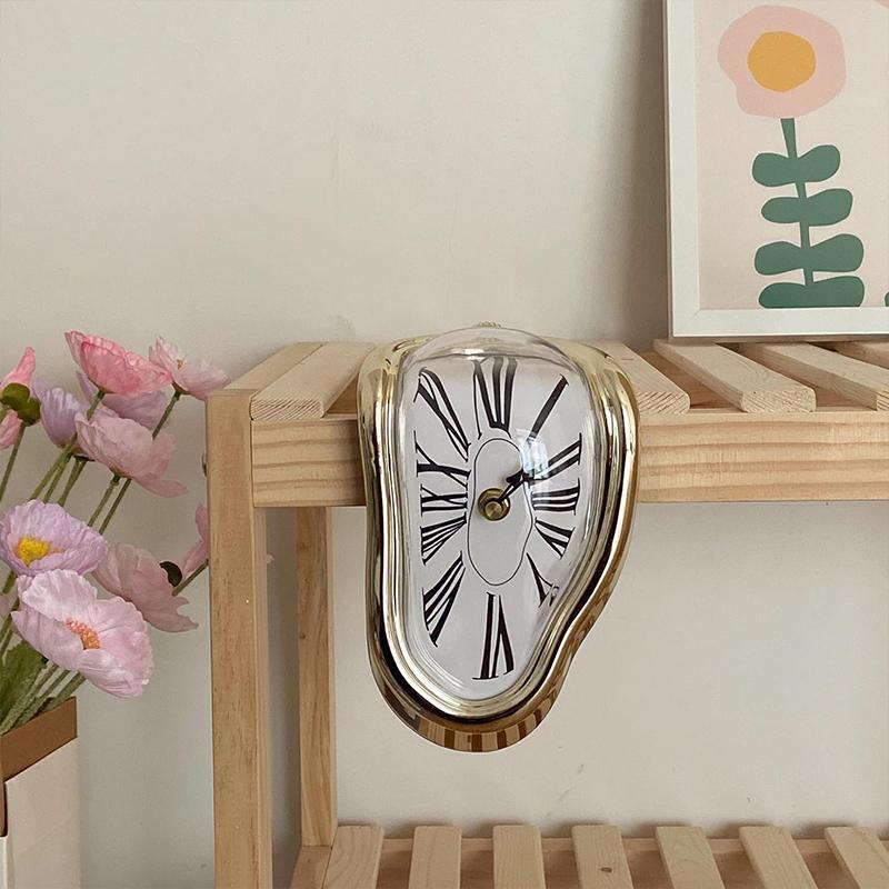 *Salvador Dali Melting Clock*The Melting Clock is a stunning decorative timepiece that combines artistry and functionality, immersing you in the whimsical world of Salvador Dali. Inspired by Dali's iconic surrealist artwork, this clock is more than just a timepiece; it's a statement piece that brings a touch of creativity and elegance to any setting. Perfect for decorating your home, office or studio, this clock will capture attention and spark conversation.*Surrealist Art Design*The Melting Clock showcases a captivating design that reflects Dali's unique artistic vision. Its surreal form adds a fascinating focal point to any room, making it the perfect addition to modern, contemporary and eclectic styles.*Versatile Decorative Item*Whether placed on a shelf, table or wall, the clock blends seamlessly into a variety of interior styles and enhances the beauty of your space. Its timeless design makes it a versatile addition that will elevate the decor of any room.*Specifications:**Colour:* Gold*Material:* Plastic*Power Supply:* AA Batteries (Not Included)*Dimensions:* 12 × 15 × 18 cm*Weight:* 0.3 kg*Package Contents:*1 x Melting Clock
