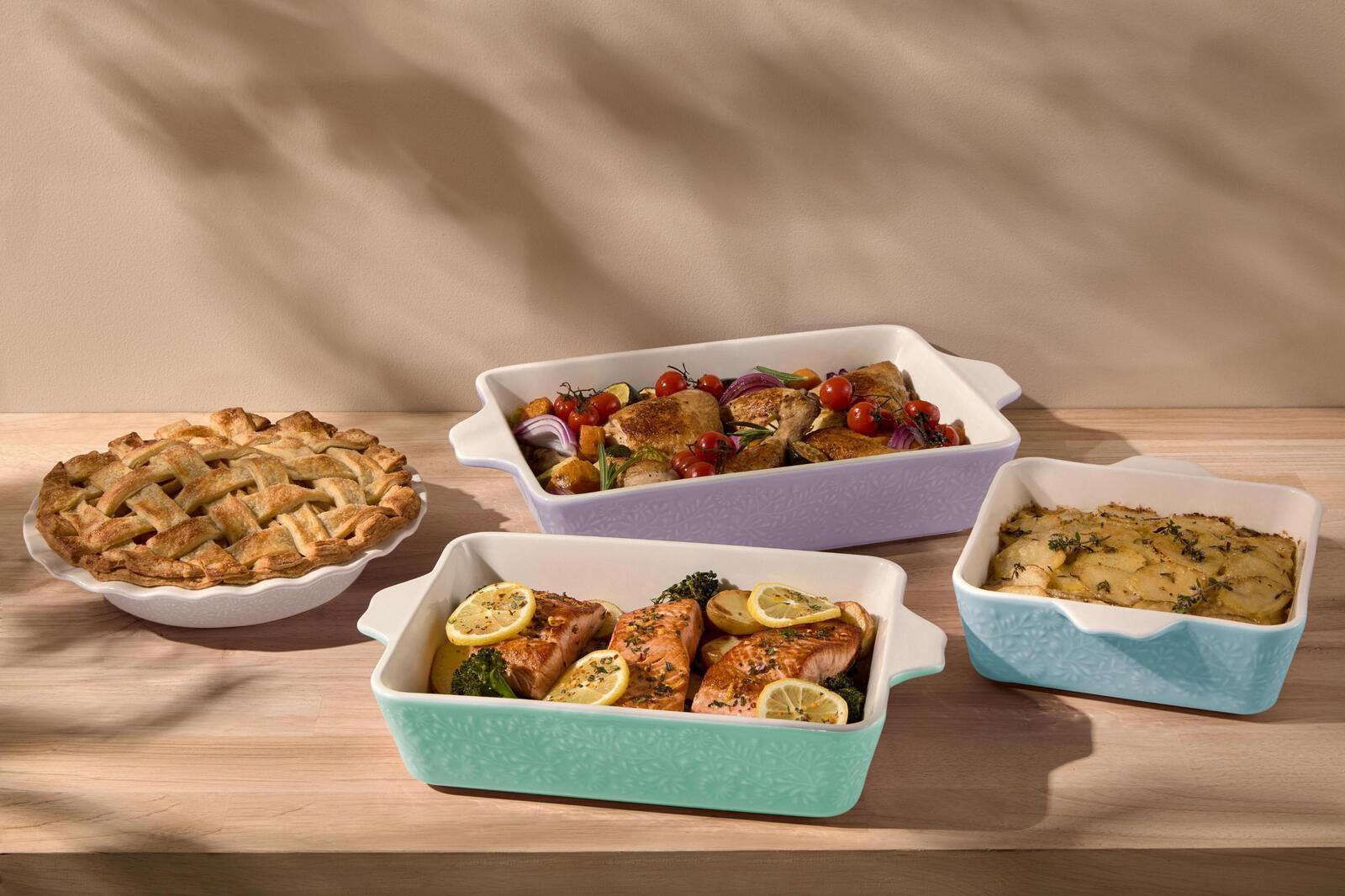 Elevate your kitchen with the Blooms Collection, an oven-to-table bakeware range available in green, blue, lilac, and white. Featuring an embossed floral design, it blends charm and sophistication, making every meal effortlessly elegant. Perfect for stylish family dinners and entertaining, it combines beauty and functionality in one.*Features:** Made from high-quality porcelain, delivering durability, a sleek finish, and timeless appeal.* A stunning rectangular baker that enhances your culinary presentation.* The embossed floral design infuses charm into your dining experience.* Coordinates effortlessly with other pieces from the Blooms Collection, creating a seamless oven-to-table setting.
