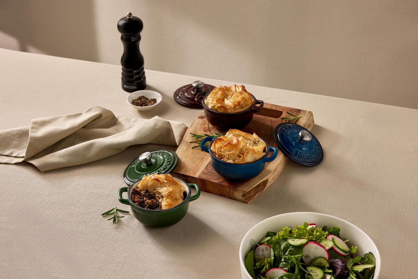 The Cast Iron Collection blends timeless sophistication with dependable craftsmanship. Designed for stovetop-to-oven-to-table convenience, its durable construction and elegant design bring warmth and style to any setting, perfect for home cooks and culinary enthusiasts.*Features:** Made from Australian iron rock, offering exceptional durability and a food-safe enamel interior that resists stains and prevents sticking.* Includes a special menu with cooking recipes for effortless stovetop-to-oven-to-table meals.* Australian cast iron ensures steady and consistent heat for perfect cooking results.* A tight-fitting lid with condensation nodules helps seal in moisture and flavour.