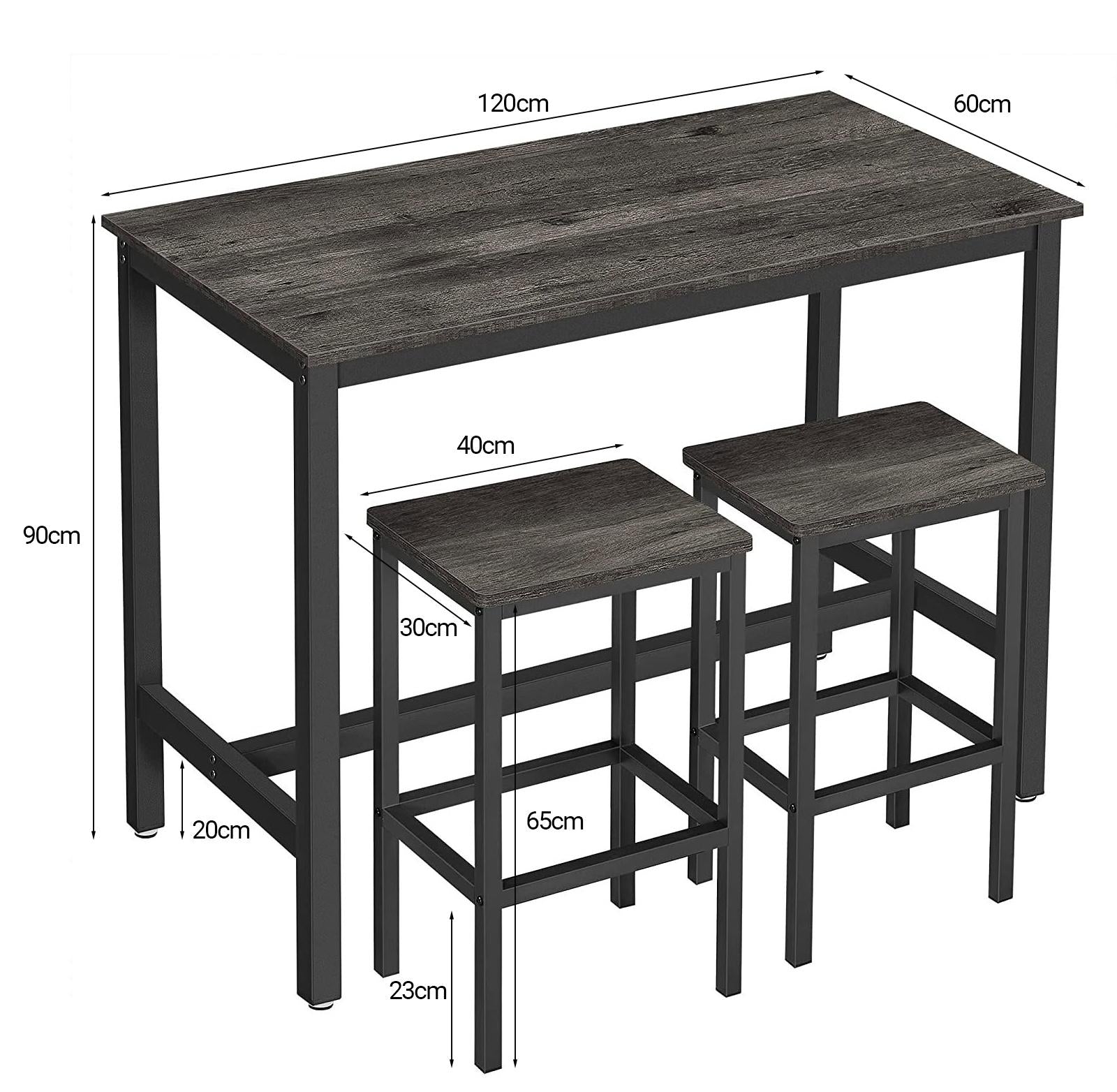 *Create a Dining Nook*Sometimes you just need a place to eat that isn’t your couch in front of the TV. A spot to eat your breakfast, have a dinner for 2, or just drink your morning coffee isn’t too much to ask for. This industrial style bar table set from VASAGLE gives small spaces the chance to shine and let you eat in comfort.*Spacious Bar Stool Set*This tall bar table set has a 120 × 60 cm surface area that gives you room to prep dinner, hold cookbooks and cutlery, and then eat when everything is finished. Underneath it, the 40 × 30 × 65 cm set of 2 bar stools sit comfortably, waiting to be used.*Easy-to-Assemble Bar Table and Stools*Nobody wants to spend their precious time assembling furniture. This breakfast bar table and stool set can be assembled in no time due to the easy-to-follow instructions and manageable number of parts. You might even have this easy-to-assemble bar table set finished before the turkey is out of the oven!*A Look for Every Room*VASAGLE offers multiple collections of industrial style furniture to match your home. No matter what room you’re looking to decorate, we have you covered. If you love this breakfast bar set, be sure to check out all of our other furniture we offer to round off your look.*Specifications** Colour: Dark Grey* Material: Particleboard, Steel* Table Size: 120 × 60 × 90 cm (L x W x H)* Stool Size: 40 × 30 × 65 cm (L x W x H)* Product Weight: 28 kg* Max. Static Load Capacity of the Table: 100 kg* Max. Static Load Capacity of Each Stool: 120 kg*Package Contents** 1 x Bar Table* 2 x Bar Stool* 1 x Accessory Kit* 1 x Instructions*WARRANTY:*Mighty Ape offers 1 Year Warranty. This warranty covers all manufacturing faults or defects. It does not cover wear, tear, or damage caused by use, accident, or failure to follow care instructions. The warranty is valid for 1 Year from the date of the order and is available to the original purchaser of the product only.*About Vasagle Furniture:*Nice-looking, well-made, and budget-friendly furniture is available for all families. Choose your favorites and reinvigorate your home with ease.
