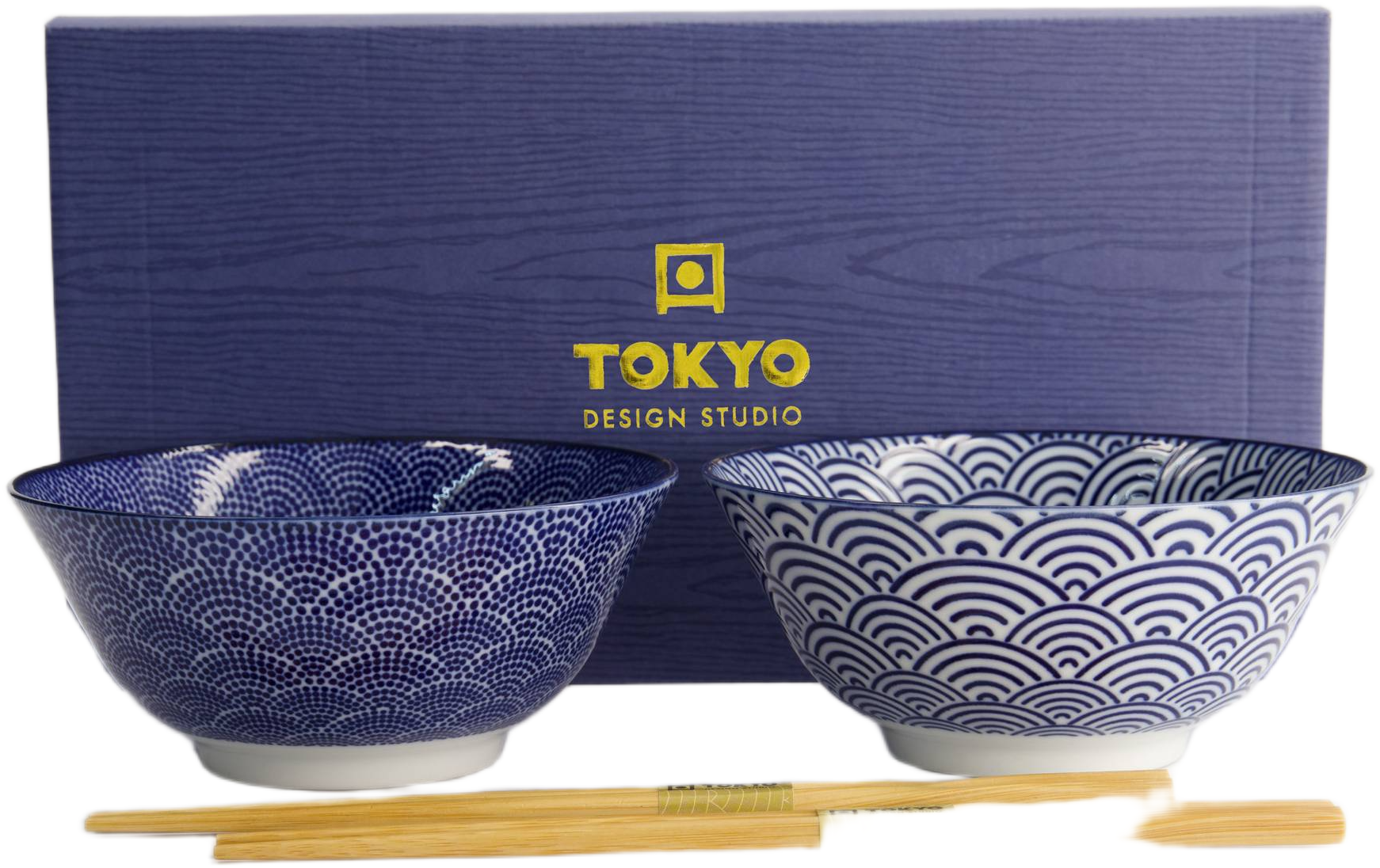 Tokyo Design Studio: Nippon Blue Tayo Bowl with Chopsticks Gift Set - Dot Wave (2 Piece Set)
