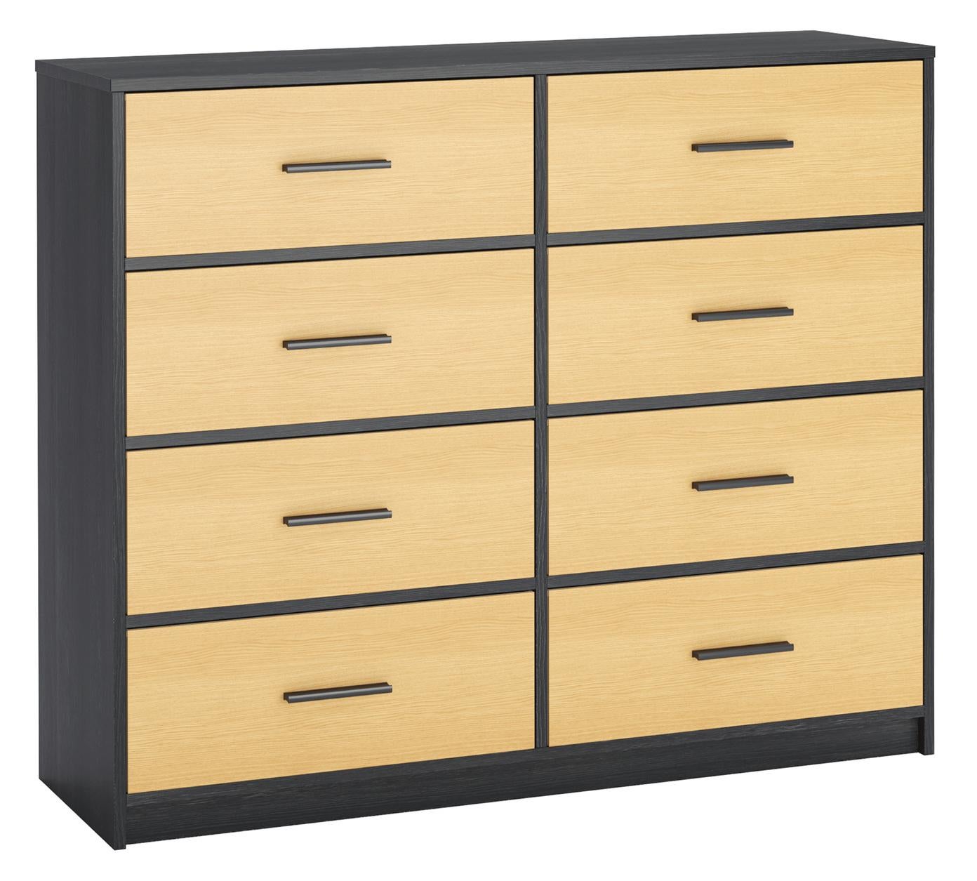 Fraser Country -Lada Home 8 Drawer Storage Dresser Wide Black & Oak