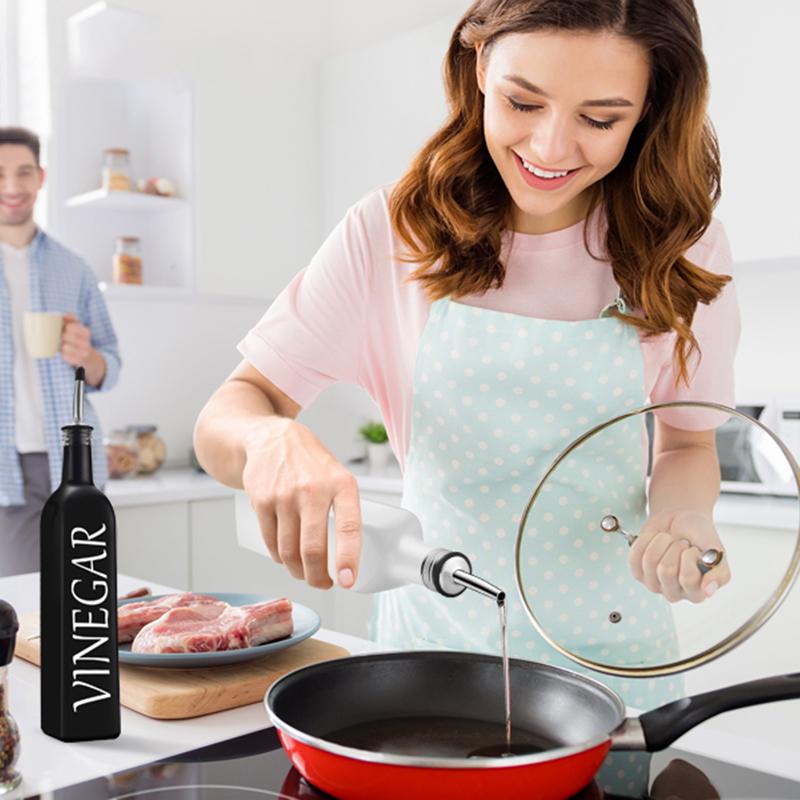 COOKOZZY Oil and Vinegar Glass Dispenser Bottles - White + Black