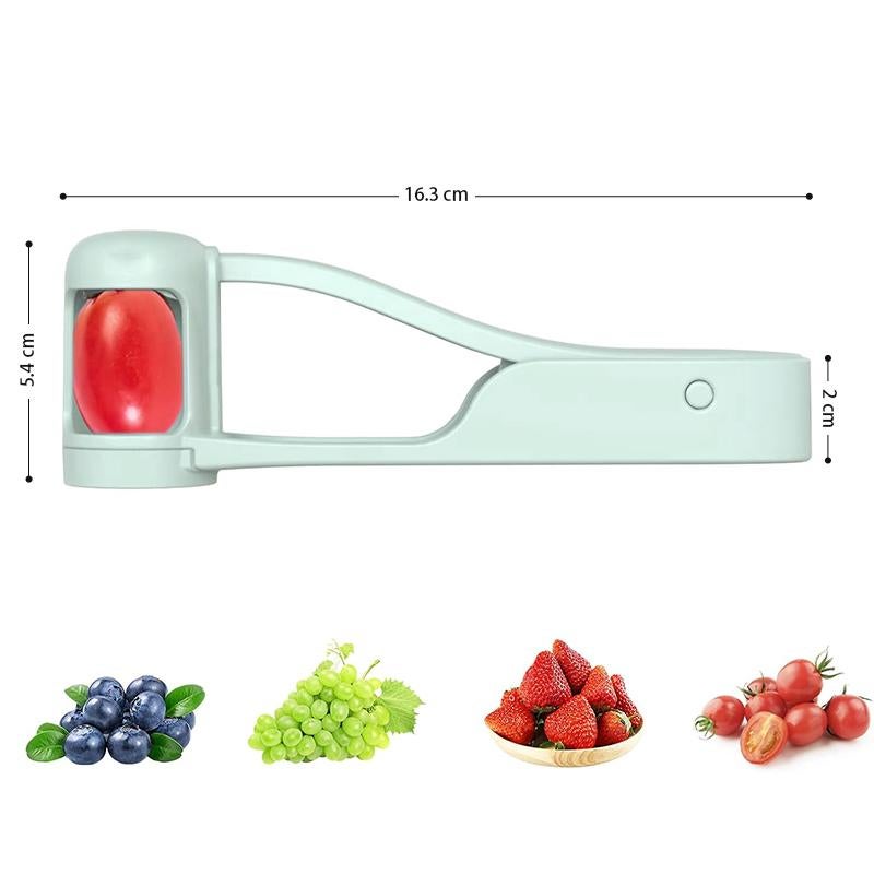 *_OZZYCOOK Grape Cutter_**_Safe, and Convenient._*With its sharp serrated blade and non-slip plunger, this cutter effortlessly cuts small seedless fruits into quarters without smashing or removing the skin. It is perfect for grapes, cherry tomatoes, strawberries, blueberries, olives, ham, and more with ease using this handy gadget.*_Easy Cutting:_*The sharp serrated blade and non-slip plunger allow for quick and effortless cutting of seedless fruits into quarters.*_Safe Design:_*The semi-wrapped design prevents smashing and skin removal, ensuring the integrity of the fruit.*_Food-Grade Materials:_*Made from high-quality stainless steel and BPA-free materials, the cutter is safe for food contact.*_Comfortable to Use:_*The soft, non-slip plunger and curved finger rests provide comfort and ease while cutting.*_One-Handed Operation:_*Simply press gently with your thumb to get four small pieces of fruit, and the cutter will automatically retract.*_Easy to Clean:_*The hollow setting and piston design make cleaning a breeze, allowing for rinsing directly underwater.*_Durable and Compact:_*Built to last with high-quality materials, the cutter is small and convenient for storage.*Technical Specifications**_Colour:_* Light Blue*_Material:_* Stainless Steel ,Plastic*_Size:_* 16.3×2×5.4cm*_Weight:_* 0.055kg*_Package Contents:_*1 x OZZYCOOK Grape Cutter
