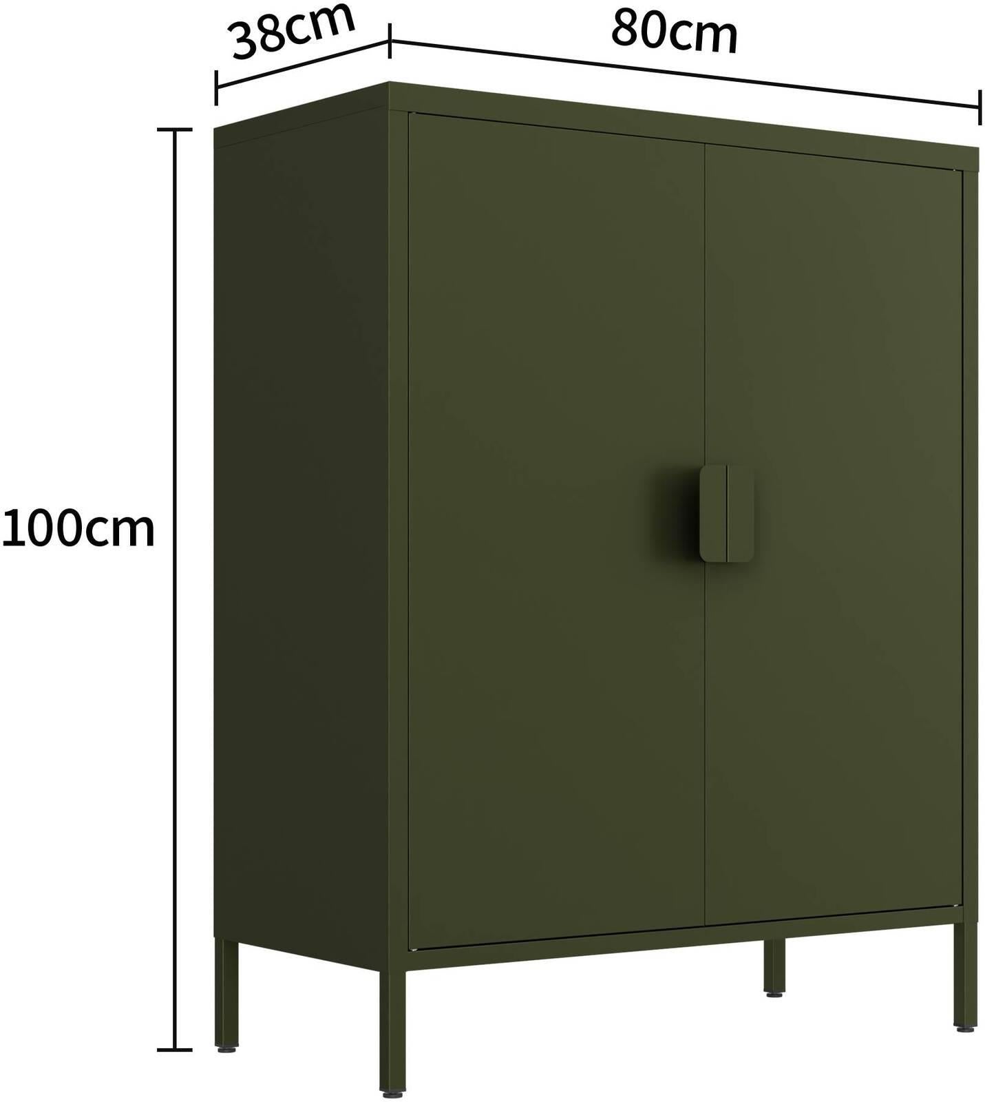The Milan Metal Storage Cabinet with 2 Swing Doors in olive green offers the perfect blend of practicality and style. Its sleek finish and perforated doors bring an industrial edge to your décor, while ensuring proper airflow for stored items.Inside, adjustable shelves let you create the storage space you need, whether for books, pantry items, or office essentials. Crafted from high-quality metal, this cabinet is built for durability, making it a versatile storage solution that adapts beautifully to kitchens, offices, or living areas.*Features:** Elegant Olive Green Finish – A versatile tone that fits seamlessly into most décor styles.* Spacious & Adaptable – Adjustable interior shelves provide flexible storage solutions.* Built to Last – Strong, all-metal construction ensures durability.* Perforated Swing Doors – Allow ventilation and add a textured design detail.* Functional for Any Room – Perfect for kitchens, offices, living rooms, or studios.*Specifications:** Product Dimensions: 100cm (H) x 80cm (W) x 38cm (D)* Material: High-grade metal for durability and longevity* Color: Olive Green* Shelving: Adjustable shelves for customizable storage