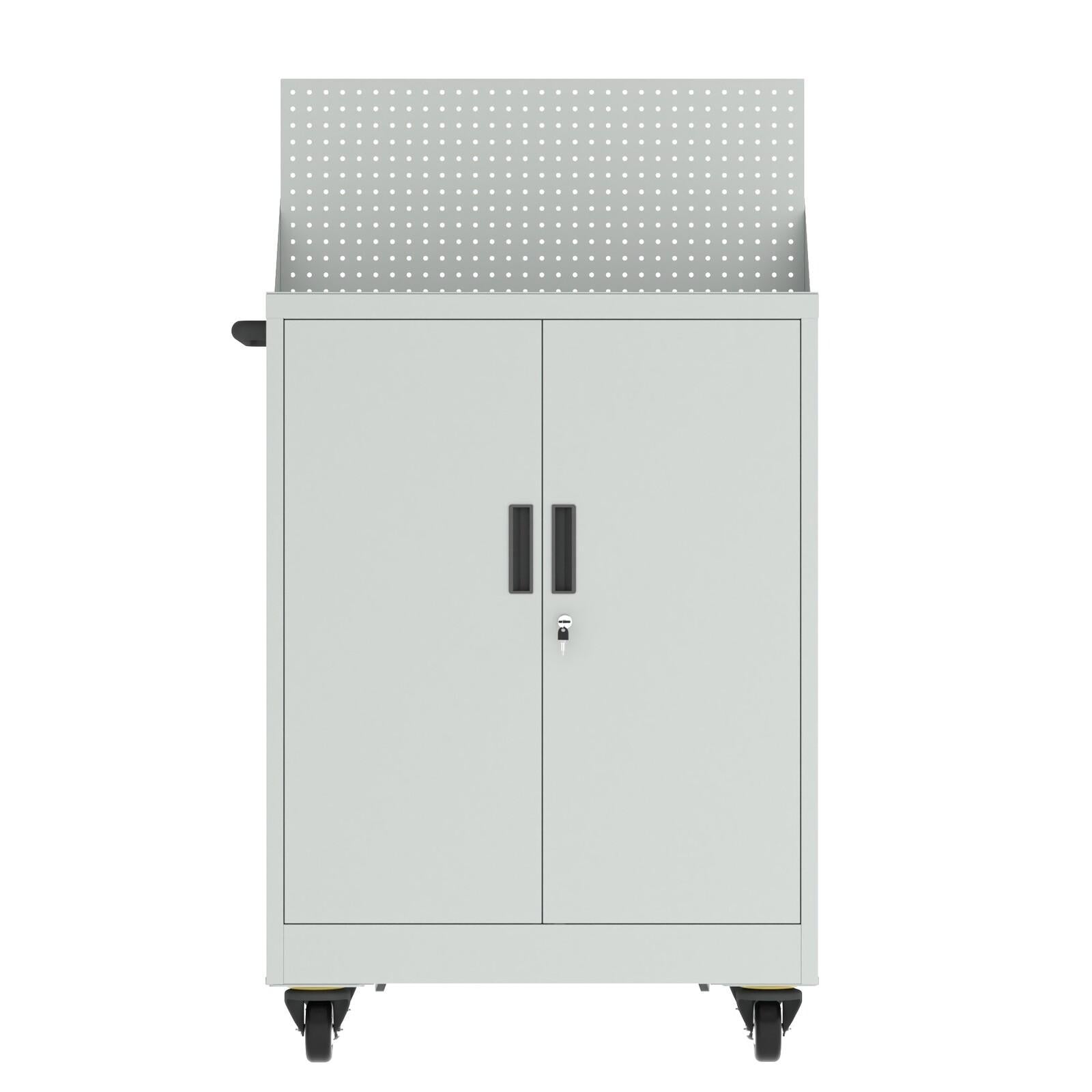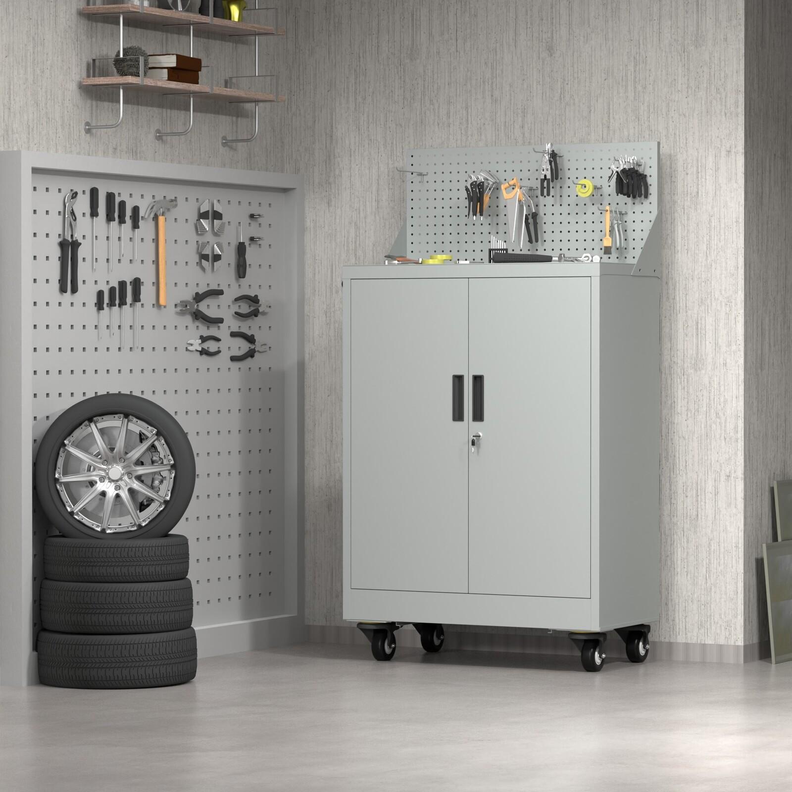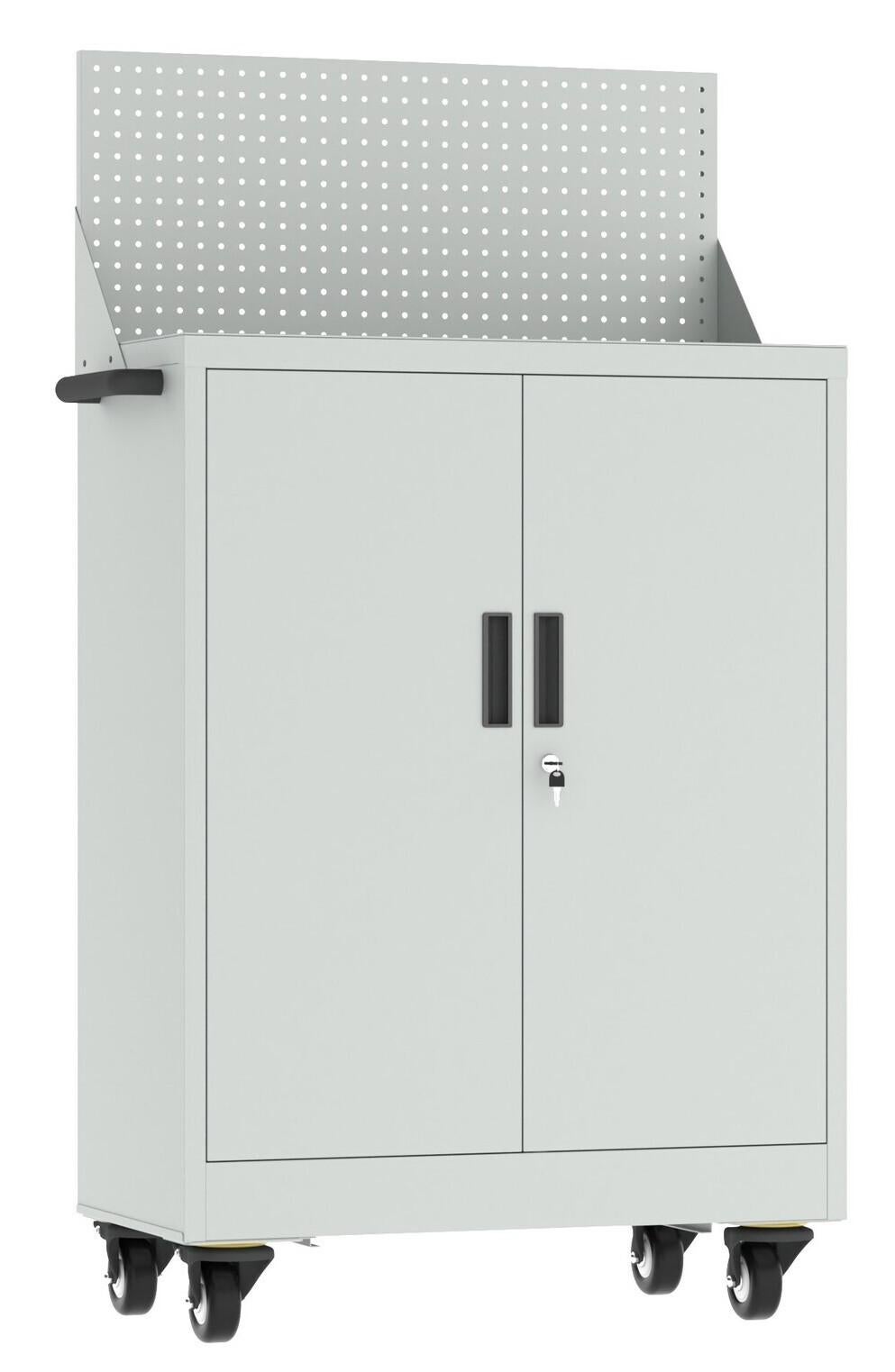 *_Fraser Country Milan Steel Tool Cart Cabinet – Light Grey_*Organize your workspace with style using the *Fraser Country Milan Steel Tool Cart Cabinet* in a sleek light grey finish. Designed to keep your tools and accessories neatly stored, this cabinet offers ample space for all your workshop essentials.Its durable steel construction, combined with smooth-rolling casters, makes it both functional and mobile. Whether you're a professional mechanic or a DIY enthusiast, this cabinet is the perfect solution for maintaining a tidy and efficient workspace.*Features** *Sturdy Steel Construction:* Built to withstand heavy-duty use, ensuring long-lasting durability.* *Ample Storage Space:* Features spacious storage compartments, perfect for tools, hardware, and other equipment.* *Integrated Pegboard:* Equipped with a pegboard for easy access and organization of frequently used tools.* *Lockable Doors:* Secures your tools with a reliable lock system, ensuring safety and preventing unauthorized access.* *Easy Mobility:* Four heavy-duty rolling casters, two of which are lockable, provide smooth movement and secure placement.* *Sleek Light Grey Design:* The modern light grey finish adds a sophisticated touch to any garage or workspace.*Specifications** *Dimensions:* 80cm (W) x 40cm (D) x 145cm (H)* *Materials:* High-quality steel frame with a powder-coated light grey finish* *Weight:* Heavy-duty, ensuring a stable and sturdy product* *Color:* Light Grey* *Included Components:* Pegboard, lockable storage cabinet with two doors, and four rolling casters for mobility* *Weight limit top shelf:* 40kgWith its practical design and sleek aesthetics, this tool cart cabinet is ideal for keeping your workspace clean and organized while adding a modern touch to your environment.