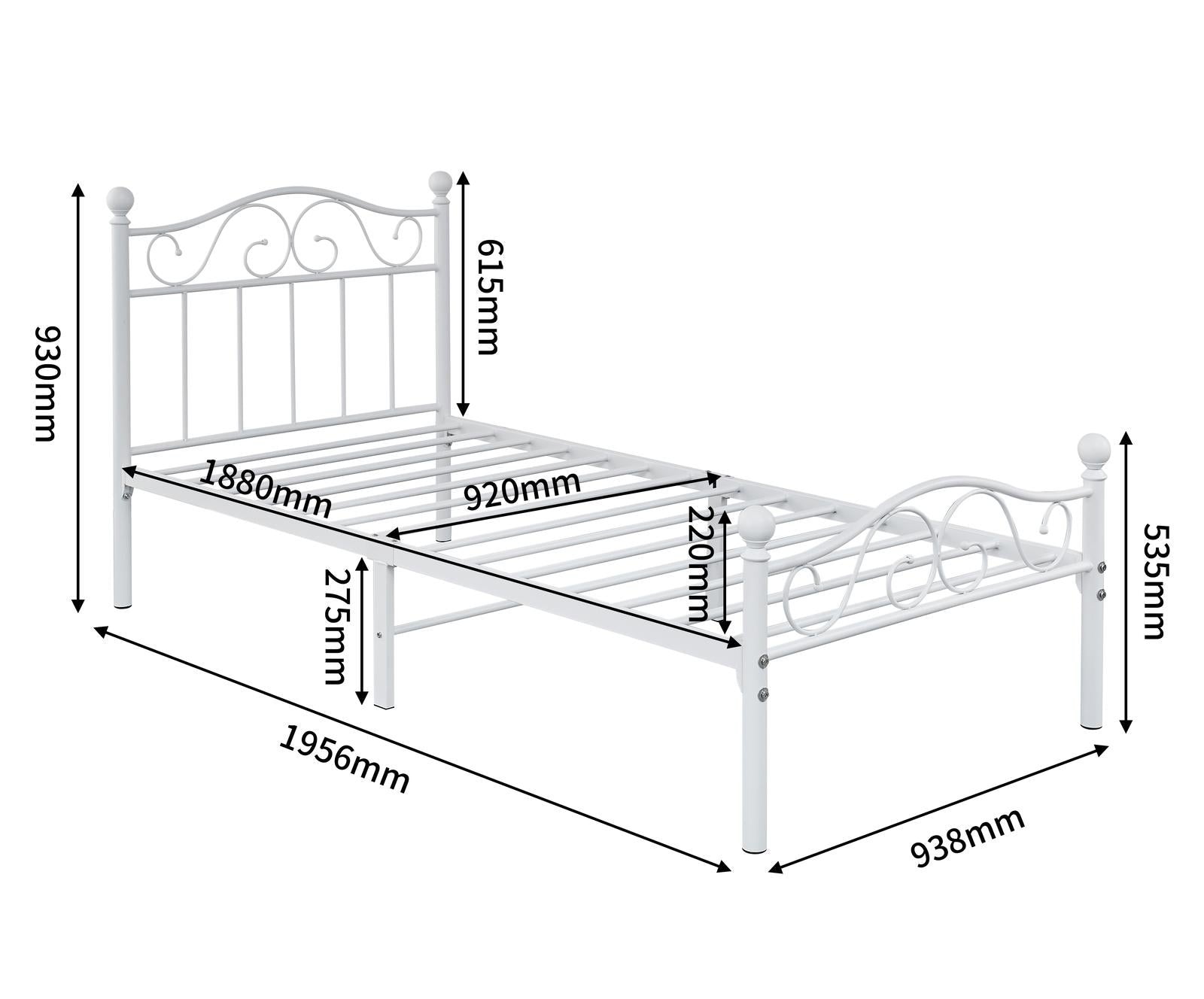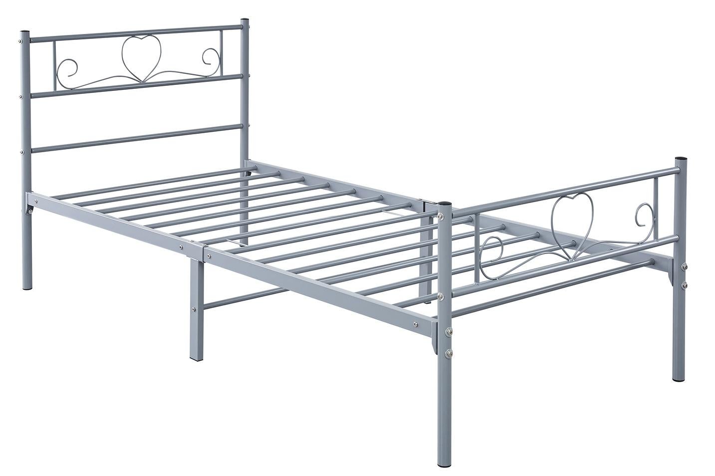 *_Fraser Country Single Metal Bed Frame – Grey_*The Fraser Country Single Metal Bed Frame in grey is a beautifully crafted piece that combines elegance with functionality. Its design features whimsical heart-shaped scrollwork and streamlined form, making it a perfect fit for any bedroom looking to add a touch of grace and modernity.* Delicate DesignThe headboard and footboard are adorned with heart-shaped scrollwork, adding a decorative and airy feel to the bed's overall design.* Sturdy StructureConstructed with a main tube diameter of φ32mm and a thickness of 0.9mm for a solid build that promises longevity.* Modern Grey FinishThe contemporary grey coating not only provides a neutral backdrop that complements any color scheme but is also easy to maintain and clean.* Supportive FrameworkThe bed includes a series of metal slats along the base, providing robust support for a single mattress without the need for a box spring.* Charming AestheticThe intricate scrollwork and soft grey color blend to create a charming aesthetic that elevates the bedroom's ambiance.* Built to LastWith its metal construction, the bed frame is made for durability, ensuring it can handle daily use with ease.* Versatile Decor FitThe neutral grey color and classic design make this bed frame versatile, able to fit in with various bedroom styles from modern to shabby chic.* Space SaverIdeal for small bedrooms or apartments, this single-bed frame makes efficient use of space while providing ample room for rest.* No Box Spring NeededThe sturdy metal slats offer ample support for your mattress, eliminating the need for an additional box spring and reducing the total cost of your bedding setup.The Fraser Country Single Metal Bed Frame – Grey offers an inviting combination of durability, style, and comfort, making it an excellent choice for anyone looking to add a durable yet elegant piece to their bedroom.*Specifications** Overall Dimensions: Designed to accommodate a standard single mattress (mattress not included)* Main Tube Dimensions: Bedposts at φ32mm with 0.9mm thickness for stability* Side Rail Dimensions: 20×40mm with 0.9mm thickness, ensuring a secure frame* Base Tube Dimensions: Diameter of 16mm with a 0.6mm thickness, providing a strong foundation* Material: Metal* Color: Grey* Warranty: 1 Year