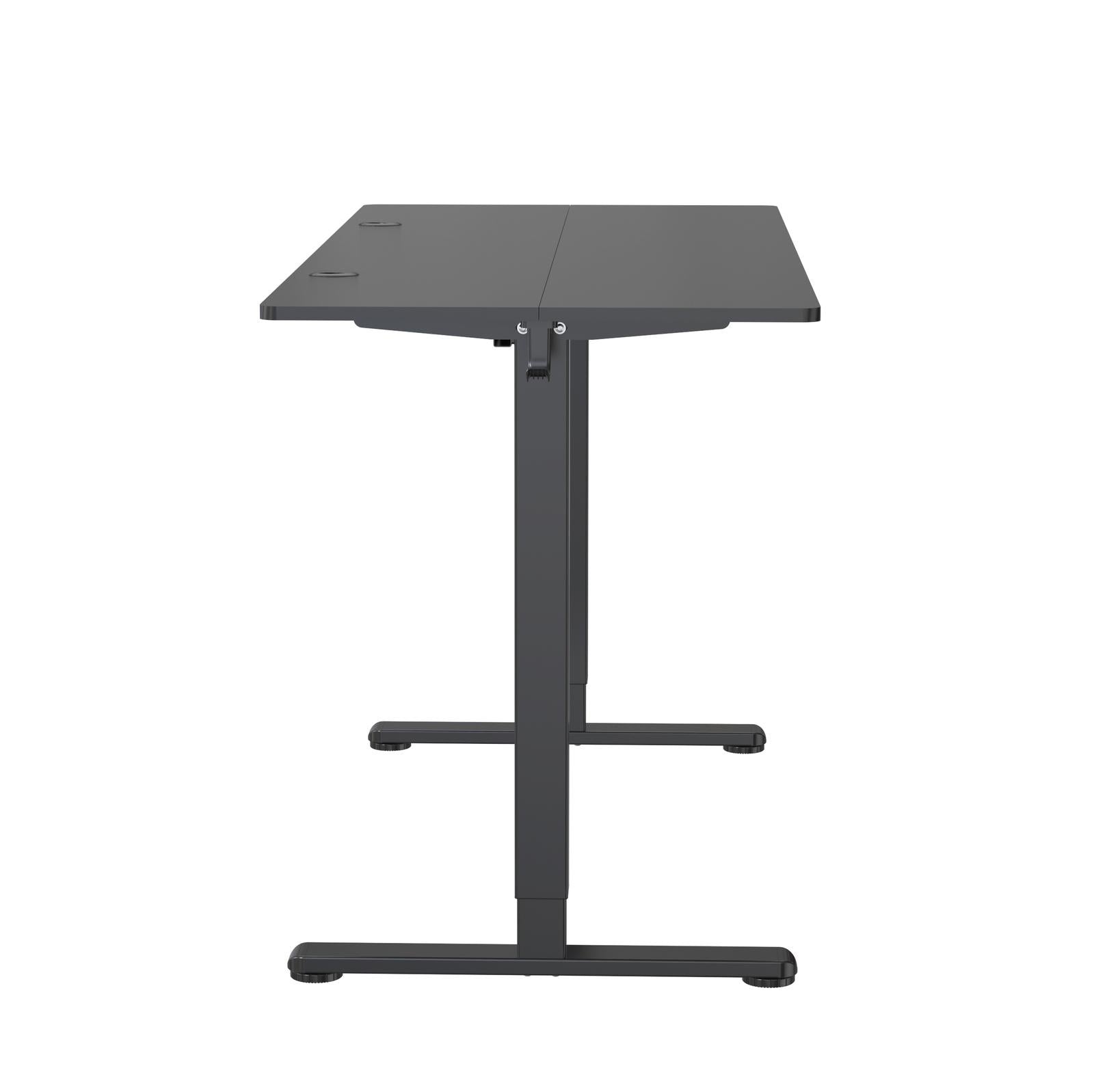 *Fraser Country: 1400 × 600mm Sit Standing Desk Height Adjustable Ergonomic Single Motor 2 Stage Max. Speed: 20mm/s Black*Upgrade your workspace with the *Fraser Country Single Motor Electric Standing Desk Black* Designed for both style and functionality, this desk is the perfect solution for a modern and dynamic work environment.Elevate your work experience with the Fraser Country Single Motor Electric Standing Desk Black, a trendy and ergonomic solution for your home or office workspace. This electric height adjustable desk features a wide desktop space and a unique square reversed column design, providing ample room for your laptop, monitor, and other office essentials.*The Health Benefits of a Standing Desk*Standing desks not only promote better posture while you’re working, they also improve blood circulation and relieve both neck and back pain. A deeper working space also makes for a more comfortable reading distance that helps reduce eye strain.*Features:** Quick installation & one package design.* Single motor system for smooth and quiet height adjustments* Split board design with two separate boards.* 2-Stage Single motor makes adjustment between heights quick and quiet.* Double-steel tubing throughout the frame for stability.* Height adjusting range from 720mm to 1180mm for a customizable working position* Quiet operation at less than 55db, ensuring a peaceful work environment* Powder-coat finish resists scratches and stains.* 3 preset memory control panel for easy and convenient height adjustments* Quiet operation single motor operates quietly, ensuring a distraction-free work environment.* Ergonomic height adjustability easily switch between sitting and standing positions with the touch of a button, promoting better posture and reducing the risk of back pain.*Specifics:** Material: Particle Board & Melamine,Steel,Aluminum,Plastic* Product Dimension *W 1400 x D 600 x H 720–1180 mm** Frame Orientation: Rectangular* Tabletop Thickness: 15mm* Tabletop Color: Black Top* 2 x Split Board* Weight Capacity: 70kg(154lbs)* Height Range: 720–1180mm* Column Size 60×60* Column Segments: Two Stage Column* Leg Quantity: Two Legs* Frame Color: Black* Adjustable Feet Pad: Yes* Motor Quantity: 1* Power Input: 110V-240V* Max. Speed: 20mm/s* Controller Type: Button Control Panel* Time Reminder: No* Accessory Kit Package: Normal/Ziplock Polybag* Accessory Included 2 x hooks 2 cable hole grommet* Power Plug Included: Yes* Instruction Manual Included: Yes* *Warranty* – 24 Months\--*Your Work, Your Way*At *Fraser Country*, we're all about a working environment that fosters creativity, productivity, and positivity. We strive to deliver high-quality products of both sleek design, and high-concept function.Whether you're furnishing a home office or corporate location, Fraser Country has everything you need to hit that deadline, crush that presentation, or close that precious deal._As for pranking the office idiot? We're still working on that. Bears. Beets. Battlestar Galactica._