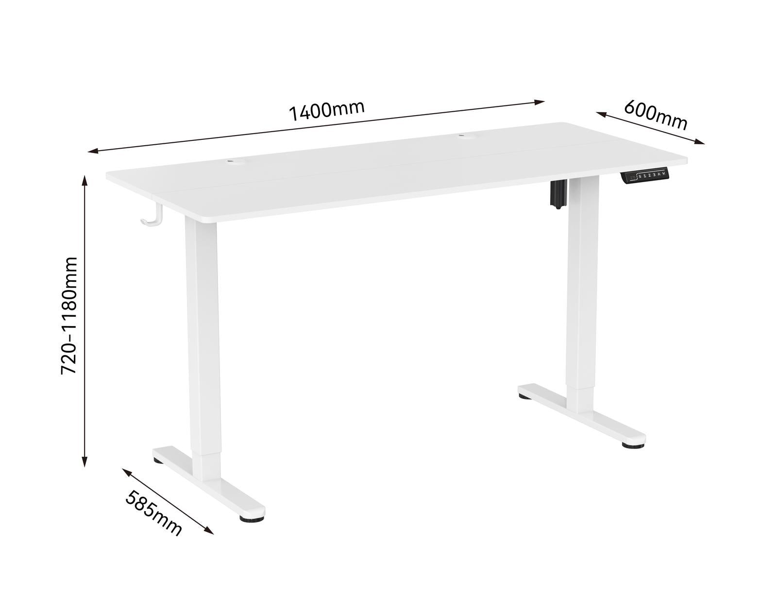 *Fraser Country: 1400 × 600mm Sit Standing Desk Height Adjustable Ergonomic Single Motor 2 Stage Max. Speed: 20mm/s White*Upgrade your workspace with the *Fraser Country Single Motor Electric Standing Desk* Designed for both style and functionality, this desk is the perfect solution for a modern and dynamic work environment.Elevate your work experience with the Fraser Country Single Motor Electric Standing Desk , a trendy and ergonomic solution for your home or office workspace. This electric height adjustable desk features a wide desktop space and a unique square reversed column design, providing ample room for your laptop, monitor, and other office essentials.*The Health Benefits of a Standing Desk*Standing desks not only promote better posture while you’re working, they also improve blood circulation and relieve both neck and back pain. A deeper working space also makes for a more comfortable reading distance that helps reduce eye strain.*Features:** Quick installation & one package design.* Single motor system for smooth and quiet height adjustments* Split board design with two separate boards.* 2-Stage Single motor makes adjustment between heights quick and quiet.* Double-steel tubing throughout the frame for stability.* Height adjusting range from 720mm to 1180mm for a customizable working position* Quiet operation at less than 55db, ensuring a peaceful work environment* Powder-coat finish resists scratches and stains.* 3 preset memory control panel for easy and convenient height adjustments* Quiet operation single motor operates quietly, ensuring a distraction-free work environment.* Ergonomic height adjustability easily switch between sitting and standing positions with the touch of a button, promoting better posture and reducing the risk of back pain.*Specifics:** Material: Particle Board & Melamine,Steel,Aluminum,Plastic* Product Dimension *W 1400 x D 600 x H 720–1180 mm** Frame Orientation: Rectangular* Tabletop Thickness: 15mm* Tabletop Color: White Top* 2 x Split Board* Weight Capacity: 70kg(154lbs)* Height Range: 720–1180mm* Column Size 60×60* Column Segments: Two Stage Column* Leg Quantity: Two Legs* Frame Color: White* Adjustable Feet Pad: Yes* Motor Quantity: 1* Power Input: 110V-240V* Max. Speed: 20mm/s* Controller Type: Button Control Panel* Time Reminder: No* Accessory Kit Package: Normal/Ziplock Polybag* Accessory Included 2 x hooks 2 cable hole grommet* Power Plug Included: Yes* Instruction Manual Included: Yes* *Warranty* – 24 Months\--*Your Work, Your Way*At *Fraser Country*, we're all about a working environment that fosters creativity, productivity, and positivity. We strive to deliver high-quality products of both sleek design, and high-concept function.Whether you're furnishing a home office or corporate location, Fraser Country has everything you need to hit that deadline, crush that presentation, or close that precious deal._As for pranking the office idiot? We're still working on that. Bears. Beets. Battlestar Galactica._