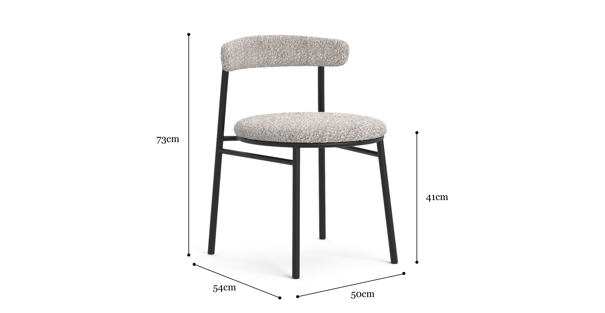 p{font-weight:bold;font-size:1.2em}. The Brosa™ Lancel Set of 2 Dining Chairs offers a modern yet timeless aesthetic, perfect for elevating any dining or living space. * *Streamlined curved design.* Ergonomic open back for enhanced support and elegance.* *Plush boucle upholstery.* Adds warmth and texture to any contemporary setting.* *Powder-coated metal frame.* Ensures long-lasting durability with a sleek finish.* *Semi-firm cushioned seat.* Offers all-day comfort and support for extended seating.* *Low-maintenance fabric.* Easy to clean, keeping it looking fresh with minimal effort.p{font-weight:bold;font-size:1.2em}. Designed for modern eleganceThe Lancel Dining Chairs feature a refined silhouette that fits seamlessly into modern or contemporary interiors. The curved open back offers ergonomic support while maintaining an elegant, streamlined look. These chairs are as comfortable as they are stylish, making them perfect for long dinners or gatherings.p{font-weight:bold;font-size:1.2em}. Comfort meets durabilityThe plush boucle upholstery brings warmth and texture to your space, while the powder-coated metal frame ensures these chairs remain sturdy and reliable for daily use. The semi-firm seat cushioning offers superior comfort, making them perfect for long-term seating without compromising style.p{font-weight:bold;font-size:1.2em}. Effortless maintenanceCrafted for modern living, the boucle fabric is low-maintenance and easy to care for. A simple spot clean is all it takes to keep these chairs looking their best, making them a practical choice for any dining or living space.