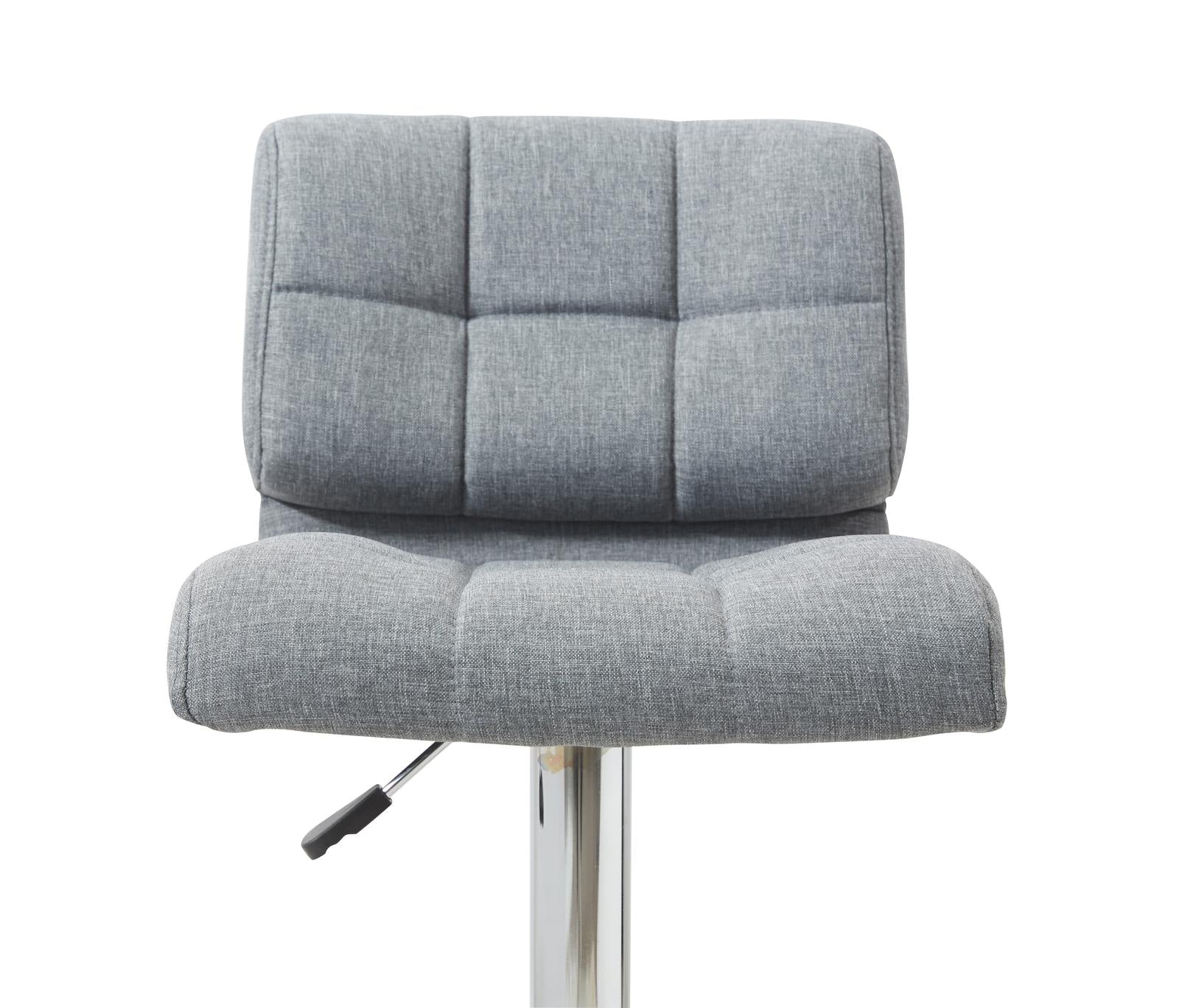 The *Fraser Country Adjustable Swivel Fabric Cushion Backrest Bar Stool* brings sophistication and style to any space. Providing a comfortable seat and a handy swivel feature, these stools are an excellent addition to bars, kitchens or dining spaces.The dual- purpose design performs as a counter height stool or a bar height stool, easily adjusted with the handle located below the seat.Lightweight, yet surprisingly robust, the stools can be moved around with ease to wherever they are needed.The chrome footrest supports your feet while also providing a contemporary chic design. To help protect your floors, the base features an embedded plastic ring.*Highlights** *Ergonomic design** *Modern aesthetic** *Lightweight** *Robust** *360 degree Swivel** *Gas lift height adjustment**Specifications** *Dimensions* 49cm x 45cm x 77–94cm (L x W x H)* *Seat Height* 62–82cm*Features** *Colour* Grey* *Material* Chrome (Base Stand) Fabric (Seating Cover) Foam (Seating Fill)* *Maximum Weight Capacity* 130kg*Warranty** *Manufacturer Warranty* 1 Year*In the Box** *2× Adjustable Swivel Fabric Cushion Backrest Bar Stool** *1× Instruction Manual*