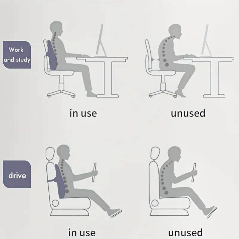 *COMFEYA Memory Foam Lumbar Support Pillow – Black*Whether you're in the office, gaming, driving, or just sitting for long periods of time, this ergonomically designed lumbar pillow is your key to relaxation and support.*Complete Back Support:*Designed to relieve upper, middle and lower back pain and tension, our lumbar support pillow helps maintain correct posture and maintain the natural curve of the spine.*High-Density Memory Foam* Made from high-density, thick and durable memory foam, this cushion provides secure and comfortable support, ensuring long-lasting density and superior comfort.*Use Everywhere:*Whether you are a driver, teacher, student, wheelchair user, office worker or senior citizen, this lumbar pillow can meet the needs of a variety of people who need back support. Enjoy comfort and ease wherever you go.*Adjustable Straps:* The lumbar pillow features adjustable straps to ensure it stays securely attached to any office chair, computer chair, sofa, car seat, SUV, truck, wheelchair, recliner or larger chair. Integrate it seamlessly with your existing home office accessories.*Technical Specifications*Colour: blackMaterial: polyester fibre, memory foamDimensions: 44 × 37 × 11 cmWeight: 0.6 kgPackage Contents:1 x COMFEYA Memory Foam Lumbar Support Pillow