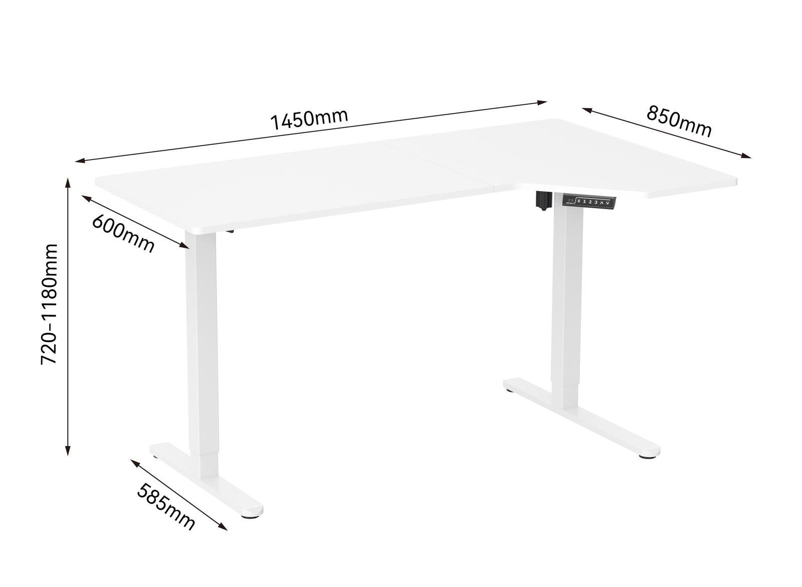 *Fraser Country: 1450 × 600 × 850mm Sit Stand Desk *Height Adjustable Ergonomic* Single Motor 2 Stage Max. Speed: 20mm/s White*Upgrade your workspace with the *Fraser Country Electric Height Adjustable Desk Black* Designed for both style and functionality, this desk is the perfect solution for a modern and dynamic work environment.Elevate your work experience with the Fraser Country *Electric Height Adjustable Desk* – White, a trendy and ergonomic solution for your home or office workspace. This electric height adjustable desk features a wide desktop space and a unique square reversed column design, providing ample room for your laptop, monitor, and other office essentials.*The Health Benefits of a Standing Desk*Standing desks not only promote better posture while you’re working, they also improve blood circulation and relieve both neck and back pain. A deeper working space also makes for a more comfortable reading distance that helps reduce eye strain.*Features:** Quick installation & one package design.* Single motor system for smooth and quiet height adjustments* Split board design with two separate boards measuring 85×60cm each* 2-Stage Single motor makes adjustment between heights quick and quiet.* Double-steel tubing throughout the frame for stability.* Height adjusting range from 720mm to 1180mm for a customizable working position* Quiet operation at less than 55db, ensuring a peaceful work environment* Powder-coat finish resists scratches and stains.* 3 preset memory control panel for easy and convenient height adjustments* Quiet operation single motor operates quietly, ensuring a distraction-free work environment.* Ergonomic height adjustability easily switch between sitting and standing positions with the touch of a button, promoting better posture and reducing the risk of back pain.*Specifics:** Material: Particle Board & Melamine,Steel,Aluminum,Plastic* Product Dimension W 1450 x D 600–850 x H 720–1180 mm* Frame Orientation: Rectangular* Tabletop Thickness: 18mm* Tabletop Color: White Top* Split Board Size: 85×60cm (x2)* Weight Capacity: 70kg(154lbs)* Height Range: 720–1180mm* Column Size: Reversed Column 60×60×1.5mm,55×55×1.5mm* Column Segments: Two Stage Column* Leg Quantity: Two Legs* Frame Color: White* Adjustable Feet Pad: Yes* Motor Quantity: 1* Power Input: 110V-240V* Max. Speed: 20mm/s* Controller Type: Button Control Panel* Time Reminder: No* Accessory Kit Package: Normal/Ziplock Polybag* Power Plug Included: Yes* Instruction Manual Included: Yes* *Warranty* – 24 Months\--*Your Work, Your Way*At *Fraser Country*, we're all about a working environment that fosters creativity, productivity, and positivity. We strive to deliver high-quality products of both sleek design, and high-concept function.Whether you're furnishing a home office or corporate location, Fraser Country has everything you need to hit that deadline, crush that presentation, or close that precious deal._As for pranking the office idiot? We're still working on that. Bears. Beets. Battlestar Galactica._*WARRANTY*Mighty Ape offers 2 Year Warranty. This warranty covers all manufacturing faults or defects. It does not cover wear, tear, or damage caused by use, accident, or failure to follow care instructions. The warranty is valid for 2 Year from the date of the order and is available to the original purchaser of the product only.