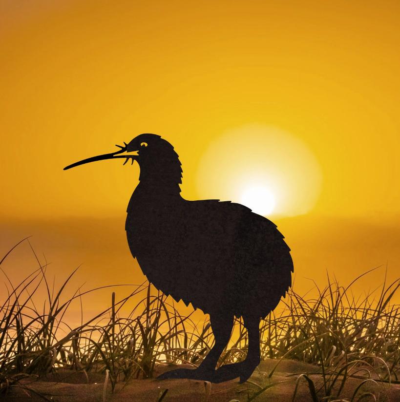 The kiwi has cat-like whiskers, hair-like plummage, nose-like nostrils and legs so powerful it can run at human-like speed! Incredible they are, but sadly not invincible – around 90% of kiwi chicks in the wild die, mostly killed by stoats and cats. Enter the other kind of amazing kiwi – ordinary, everyday human kiwis are actively protecting an area of 230,000 hectares to help prevent our national icon from becoming extinct – about the same size of the land area protected by DOC. Go the kiwis for the kiwi! We think Metalbird kiwi will be a proud addition to any backyard.✓ 43cm high by 31cm wide approximately 450g✓ Easy to send our large boxes measure 39cm x 34 cm x 1cm, designed to fit in a postal mailer✓ Same day dispatch on orders placed before 2pm on weekdays✓ Made locally in a family-owned factory, right here in NZ✓ Crafted from 3mm Corten steel and designed to last a lifetime✓ Easy to install by inserting firmly into the ground, or simply wedging between two solid surfaces