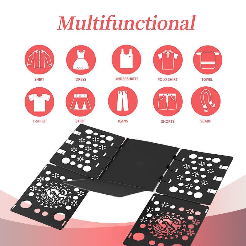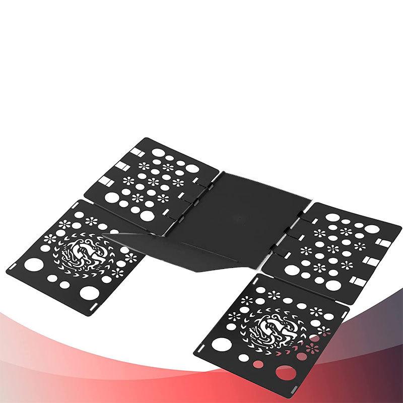 Clothes can now be folded Easily, more fun for your child and more time for other things. Save space, fold and store when not in use.It can be hung on a hook with holes on the top of the board for easy portability or going out.It's easy to fold and doesn't take up much storage space.It has an efficient design for thin, medium and thick clothes and is perfect for long pants, shorts, pyjamas, short and long sleeve T-shirts, towels, uniforms and more!With this device, you can fold all your clothes to a uniform size.*Package Contents*1\*clothing board*Product Specs:** *Colour:* Black* *Material:* ABS* *Size:* Folded – 28.5\*23.5cm, unfolded – 68\*57cm* *Weight:* 566 grams