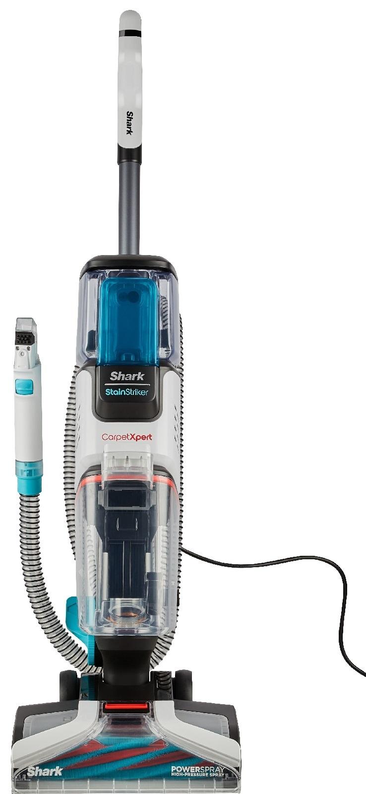 Shark CarpetXpert, with Stainstriker, 2-in-1 deep carpet cleaner and spot & stain eliminator, combines Shark's strongest suction & PowerWash high pressure spray.*Features:** Best Deep Carpet Cleaning – Shark's powerful suction and deep-cleaning innovation delivering deep carpet cleaning along with tough stain elimination results.* Handheld Spot & Stain Eliminator – Deep carpet cleaner with a built-in spot and stain remover designed to extend and clean stairs, carpet, upholstery and other isolated stains.* Stainstriker Technology – Two unique chemicals mix and activate on contact in the handheld tool unleashing the power of OXY for stain-striking power.* Perfect For Pets – Eliminates odours instantly and permanently, including pet urine and smoke.* Whole Home Cleaning – Extend the built-in portable carpet cleaner to remove stains on stairs, carpets, upholstery and and other isolated stains so you never miss a spot.* Ultra-Fast Dry Times – Shark's CarpetXpert technology and powerful suction deliver ultra-fast dry times without oversoaking your carpets.*In The Box:** 1× Shark® CarpetXpert™ with StainStriker* 1× Integrated Crevice Tool* 1× Pet Tool* 1× Stain Tool* 1× Wide Stain Tool* 1× 354ml Shark Stainstriker OXY Multiplier™ Formula* 1× 177ml Shark CarpetXpert Deep Clean Pro