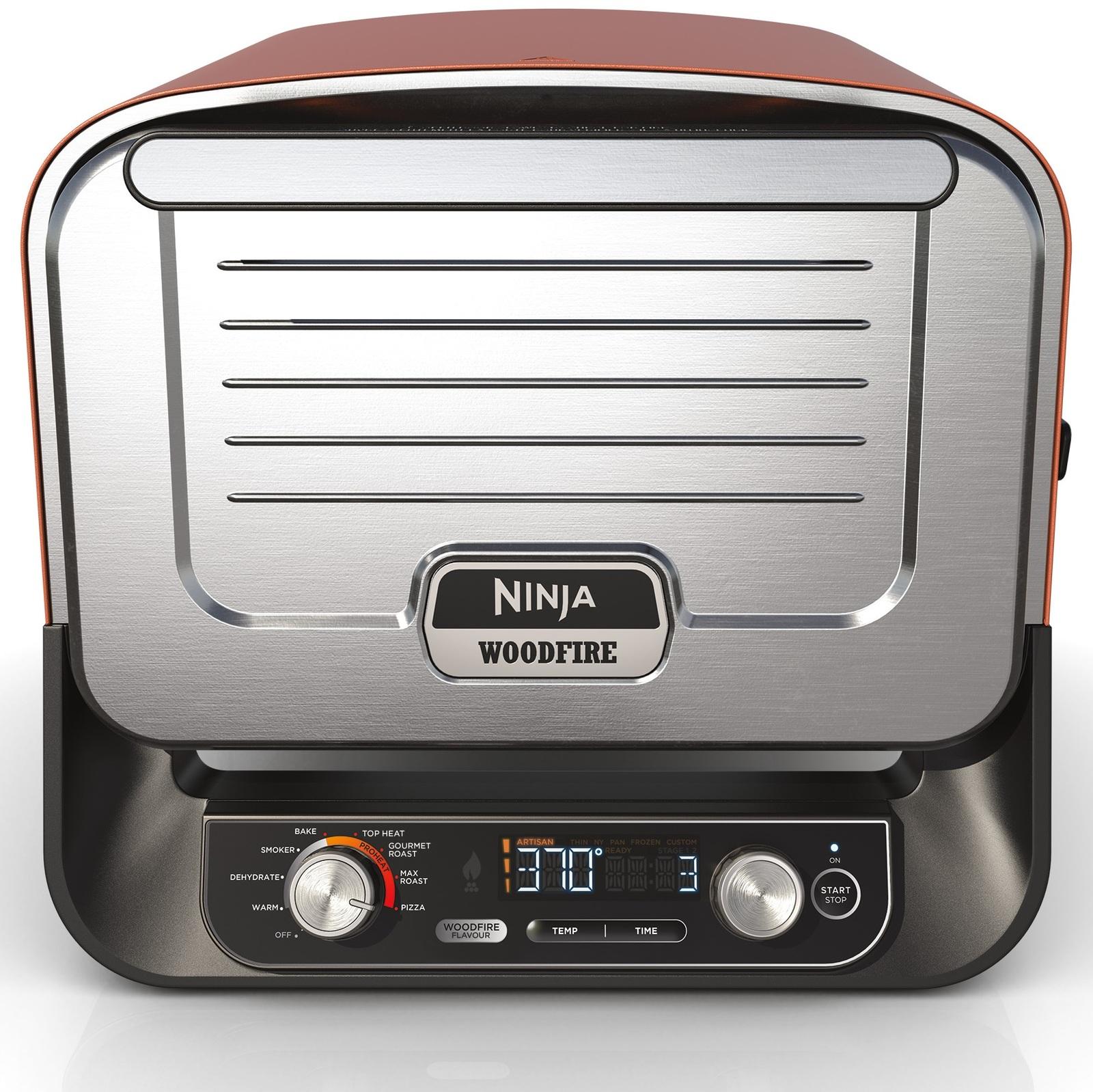 Discover a new level of outdoor cooking with the Ninja Electric Woodfire Outdoor Oven. This eight-in-one electric oven combines versatility and convenience, enabling you to bake, roast, smoke, dehydrate and more, with temperature control from 25–370°C.Achieve artisan pizza perfection in just three minutes or cook for a crowd with ease, fitting a 5.4kg turkey, a full prime rib dinner or a 30cm pizza. The Woodfire technology adds rich smoky flavour to any dish with just half a cup of pellets, delivering premium textures and authentic barbecue taste.Designed for year-round outdoor use, this oven brings the warmth and flavour of a woodfire experience to your backyard, creating delicious results with minimal effort.*Features:** Integrated smoke box – Powered by electricity, flavoured by real burning wood pellets. Add authentic barbecue flavours to anything you make by adding 1/2 a cup of pellets at any temperature up to 370°C.* Complete temperature control – Achieve wood-burning heat levels with no open flames. Electric heating offers a broad temperature range from 25°C to 370°C, providing full control for various cooking styles and techniques.* Feed a crowd – Easily accommodates a 5.4kg turkey, 4kg pork shoulder, 5.4kg prime rib with veggies, 30cm pizza, full sheet pan meal, or standard 20×28cm casserole dish for versatile cooking options.* Outdoor, year-round – After cooking, simply leave the oven outside. Designed for all-season durability, it withstands outdoor elements, making it perfect for year-round cooking and convenient storage.*What's in the Box** 1 x Pro-Heat Pan* 1 x Pizza Stone* 1 x Pizza Peel* 1 x Roast Rack* 1 x Accessory Frame* 1 x Pellet Scoop* 1 x All-Purpose Pellet Blend (Sample).*Specifications** Colour: Arabian Spice* Wattage: 1760W* Cord Length (m): 1.4 m* Weight (kg): 14.7 kg* Settings: Pizza, Max Roast, Gourmet Roast, Top Heat, Bake, Smoker, Dehydrate and Keep Warm* Pizza Settings: Artisan, Thin Crust, New York, Deep Pan and Calzone* Dimensions (cm): H=38.4 cm, W=45.7 cm, L=54.6 cm