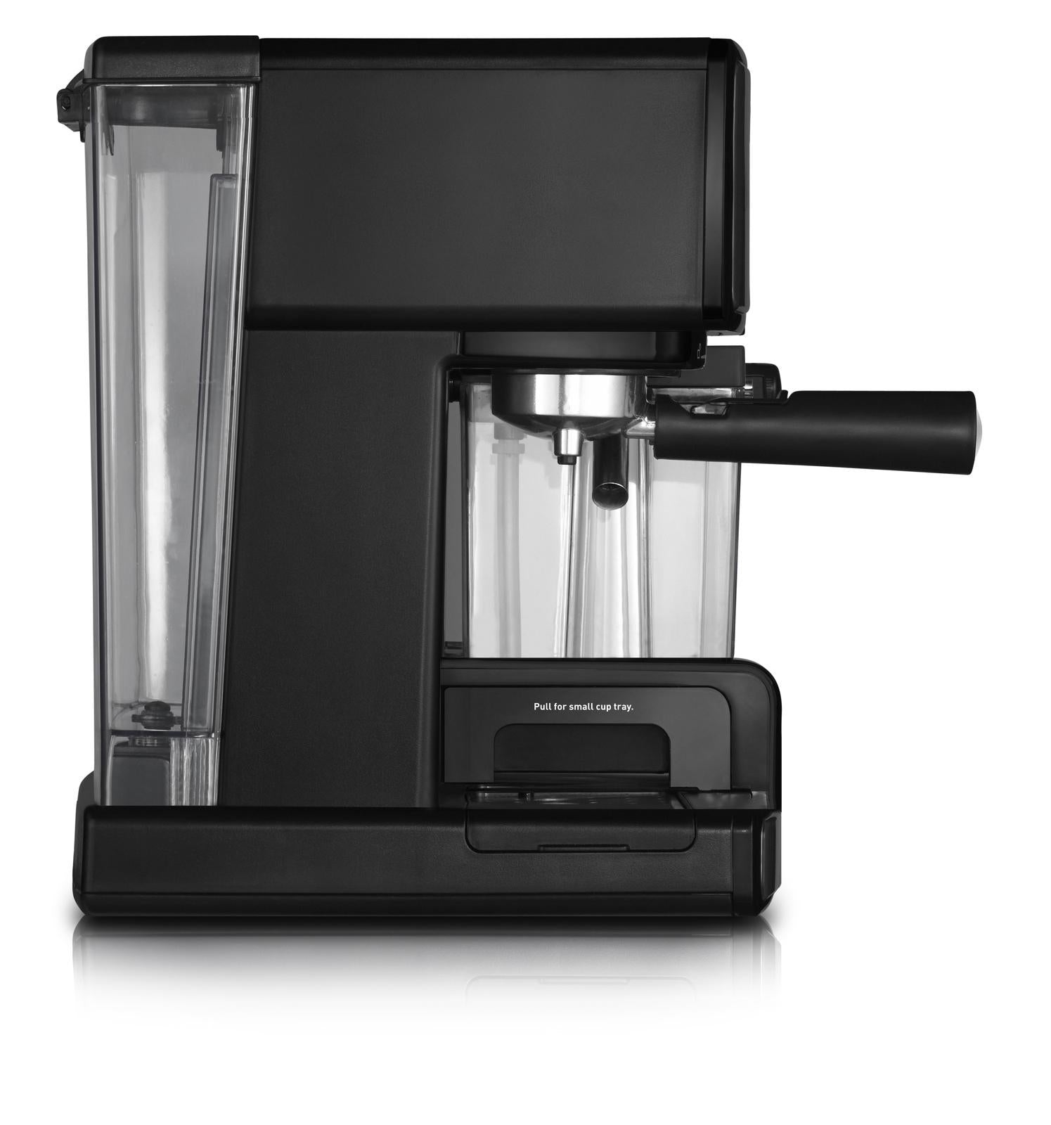 *Sunbeam: Café Barista Machine – Black*The Sunbeam Cafe Barista is a great coffee machine for those who are new to espresso.With manual and automatic features within the one machine, mastering the art of coffee won’t be beyond anyone in your household. With two filter baskets, you can opt for a single or double shot.Once you’ve tamped your grounds and locked the porta-filer into the group head, you can select your beverage from the one-touch control panel – espresso, cappuccino, or latte. If you feel more confident in your abilities, you can also set a manual volume.The milk is frothed inside a convenient carafe that features adjustable froth density as well as a cleaning cycle. You can store the carafe inside your fridge if you have leftover milk.*One-touch control panel:*Manually frothing milk can be a finicky craft, but thankfully this machine takes care of that. With buttons for espresso, cappuccino, and latte, your favourite beverage is just a touch away. You can press any of these buttons twice to pour a double shot.*Automatic milk system:*Playing barista can be fun, but it can also be tricky if you’re new to the wonderful world of espresso. This machine removes the guesswork from milk frothing. Simply fill the milk carafe, select your preferred beverage from the top panel, and watch the foam fill your cup. The carafe features a knob for adjusting the foam density.*Thermoblock technology:*Coffee machines built with a thermoblock are designed for only heating the water required for making your coffee, whereas boiler models heat an entire reservoir of water. Thermoblock machines are also known for their quick startup time and, let’s face it, a coffee craving can bring out impatience in the best of us.*Cup height adjusting tray:*From a small glass for espresso to a bulky mug for cappuccino, this machine can accommodate all sorts of cups thanks to the sliding drip tray.*Other Features:** *Beans:* Pre Ground beans used only.* *One touch:* One touch control panel for drink selection – Cappuccino, Latte, Espresso.* *Automatic Milk Frothing:* Take out the guesswork and make silky, frothy milk at a touch of a button.* *Thermoblock Heating Technology:* Provides fast heat up and consistent temperature.* *Removable Milk Reservoir:* Remove to store in the fridge.*Specifications:** *Model Number:* EM5000K* *Weight:* 5.41 KG* *Depth:* 268 mm* *Height:* 320 mm* *Width:* 224 mm* *Power:* 1470 W* *Accessories:* Includes Group Handle and Measuring Spoon* *Finish Colour:* BlackIf you’re after a machine that removes most of the guesswork from making coffee, but doesn’t deny you the pleasure of playing barista, this Sunbeam semi-automatic machine will not disappoint.