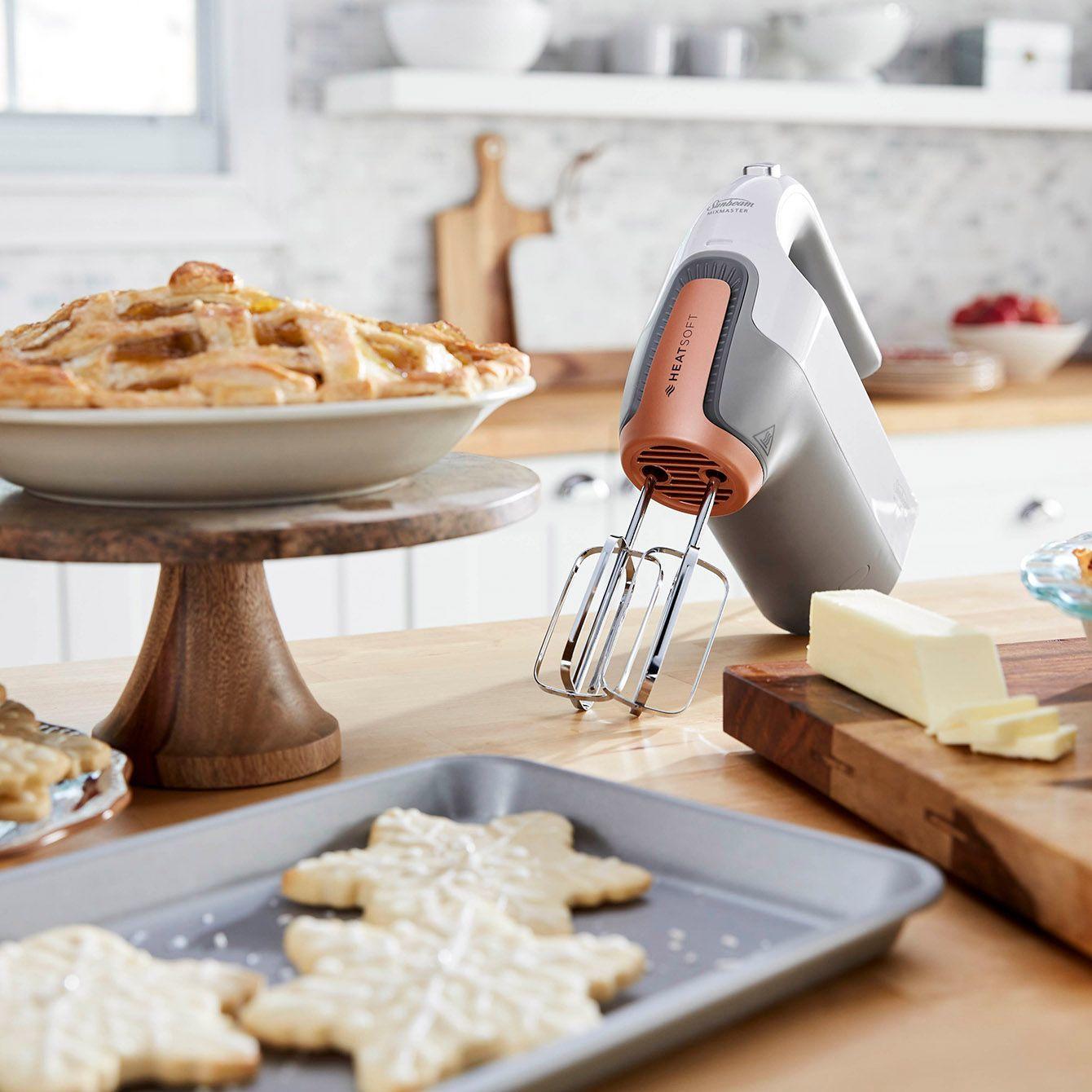 *_Sunbeam: Heat Soft Technology Hand Mixer_*No more waiting for ingredients such as butter to reach room temperature before baking. Soften butter 12× faster\*\* with unique HeatSoft™ Technology which gently brings ingredients to room temperature whilst mixing for smoother, creamier and faster baking.*Specifications & Features:** HeatSoft function for smoother, cremier batters* 7 speed settings* Burst of power feature to handle thick batters at the touch of a button* Includes stainless steel beaters, dough hooks and a whisk* Case for easy storage* Magnetic nozzle removes for easy cleaing