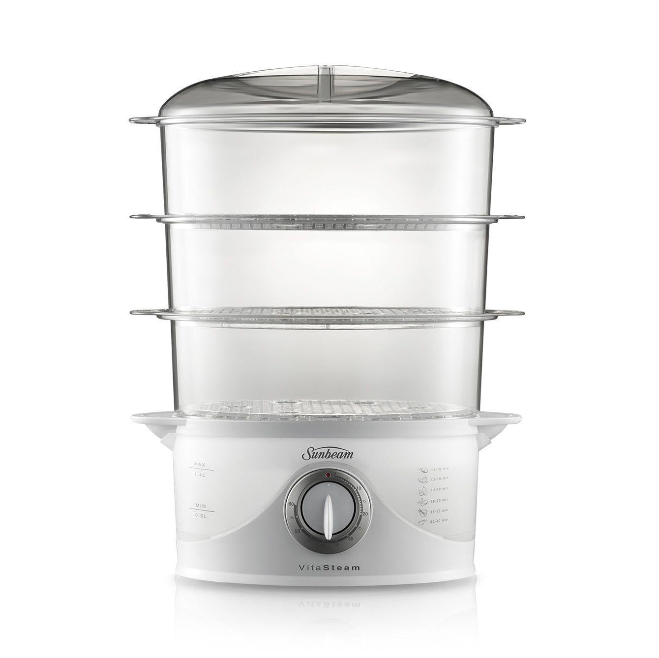 *_Sunbeam: Vitasteam 3 Tier Steamer_*Prepare small to large quantities of nutritious steamed meals quickly and easily. Preparing a delicious and nutritious meal is simple with the Sunbeam VitaSteam™. Steam seafood, poultry, vegetables, rice, eggs and even fruit. Simple and quick to use, the instant steam function will have you cooking your favourite meals in no time.* Creates instant steam in 30 seconds* With 3 nesting tiers and separate 6 cup rice bowl* BPA free* Plastic steamer