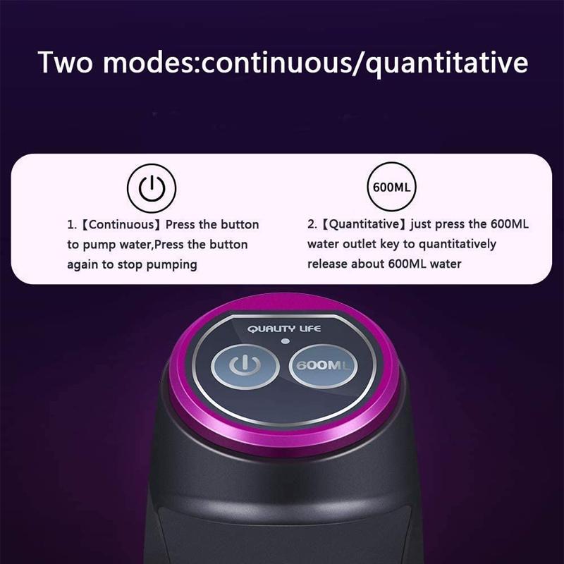 *Upgrade your manual water pump with this electrical one.*This water pump is made with BPA-free materials, with food-grade silicone hose, 304 stainless steel, high-density ABS plastic, non-toxic, does not transfer strange smell into the water, and is completely safe for human consumption.This Rechargeable water pump has a built-in 1200mAh battery. After being fully charged, which takes about 3–4 hours.*Features:** This electric water pumping device is suitable for pure bottled drinking water* Two modes: 600ML quantitative pumps and continuous pumps.* Suitable for gallon barrels without prying open the lid.*Specifics:** *Colour* – Gray* *Material* – ABS, Stainless Steel* *Dimensions* – 13.5 × 15 cm* *Water Pipe Length* – 53 cm* *Weight* – 300g* *Functions* – Water Dispenser* *Battery Information* – 1200mAh