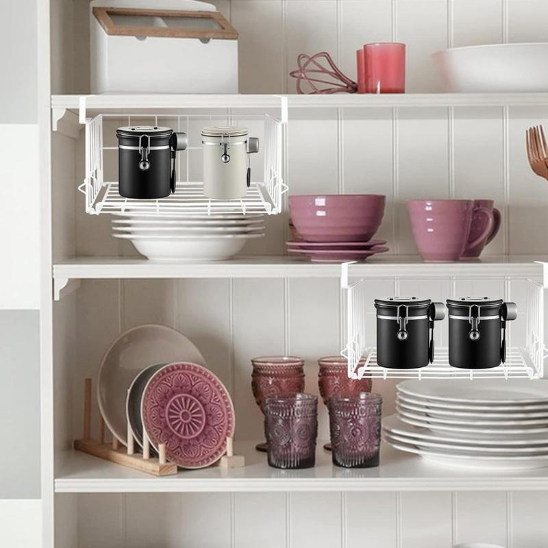 *STORFEX Under Shelf Organizer – White (2 Pack)**Versatile Storage:*Ideal for storing seasonings and various kitchen supplies, maximizing the use of available space.*Clear View Design:*Prevents small items from falling through, ensuring easy access and management of essentials.*Smooth Access:*The sliding storage basket offers smooth and convenient access to your items, eliminating disorganized clutter.*Durable Construction:*Made of durable metal material, resistant to rust and wear, ensuring long-lasting use.*Easy Cleaning:*Wipe with a damp cloth followed by a dry one for a clean and fresh look; maintenance is a breeze.*No-Installation Design:*Requires no installation; easily slides onto the top shelves in cabinets, pantries, bathrooms, and desks.*Technical Specifications*Colour: WhiteMaterial: MetalSize: 30 × 31 × 15.7 cmWeight: 1.28 kgPackage Content:2 x STORFEX Under Shelf Storage Organizer1 x User Manual
