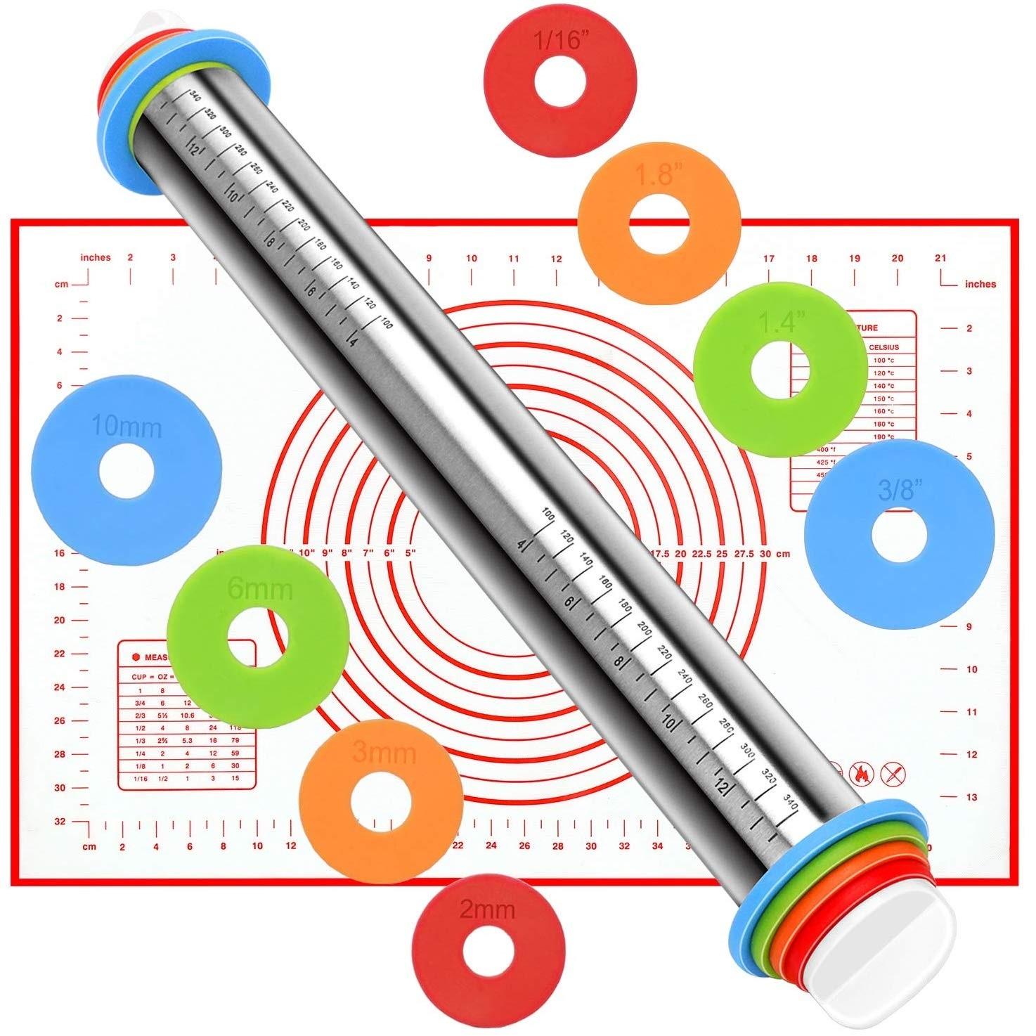 This innovative rolling pin takes the guesswork out of preparing biscuit dough, pizza bases, pie tops, lasagne sheets and filo pastry. It comes with four sets of removable discs that raise the rolling surface by different amounts, to create exactly the required pastry thickness.* Rolling pin with removable discs for creating different pastry thicknesses* Select from 2 mm, 3 mm, 6 mm or 10 mm disc size* Pastry width measuring guide on rolling pin surface* Suitable for biscuits, pizza bases, lasagne sheets, puff pastry and icing sheets* Use without discs as a conventional rolling pin*Specification:** Material: Stainless steel+PP* Warranty: 1 year*Pack list:** 1 x Stainless steel rolling pin* 1 × 10mm PP round ruler* 1 × 6mm PP round ruler* 1 × 3mm PP round ruler* 1 × 2mm PP round ruler