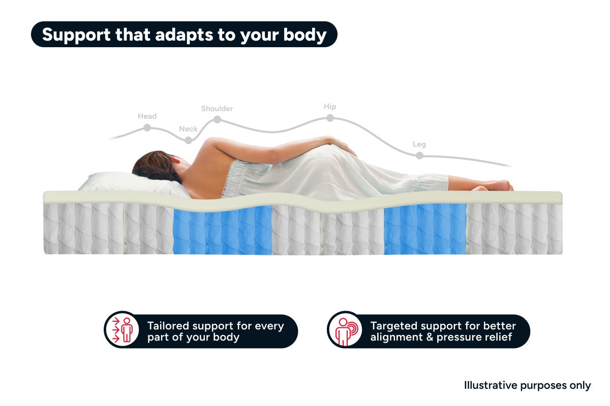 No more restless nights caused by a moving partner. Whether they stay up late or leave bed early, the innovative pocket springs absorb motion independently, isolating their movements so effectively it feels like you have your own bed.