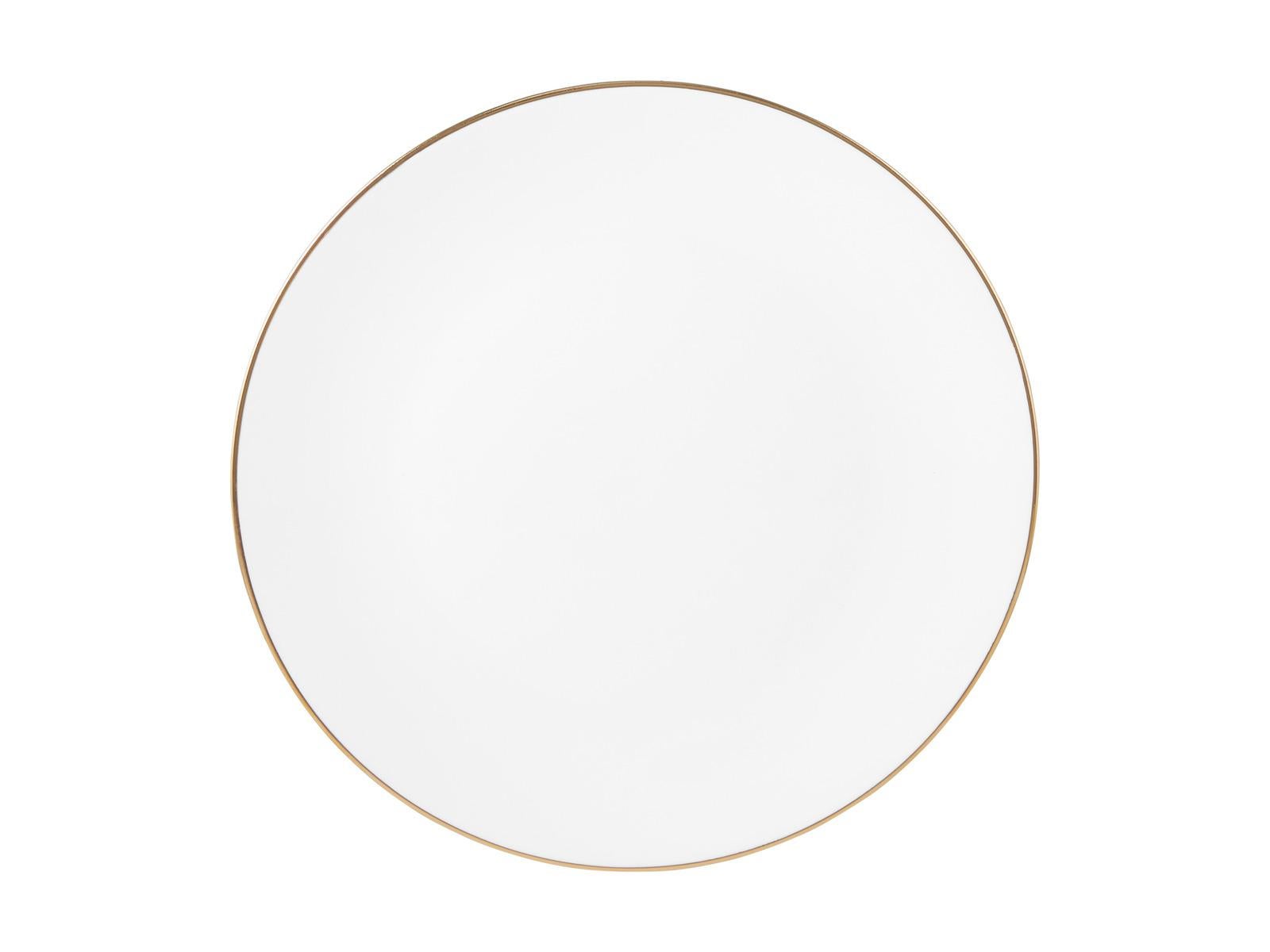 The White Gold 23cm coupe entree plate adds a touch of luxury to your table. This gorgeous piece brings a premium edge to classic dinnerware, combining the crisp beauty of white porcelain with the sparkle of gold trim. Simple and elegant, it has a timeless round shape with a modern coupe rim – perfect for serving entrees and sides. A stylish way to add a little something extra to a classic lunch spread or dinner party, it will make an impression at any occasion.*Features:** Rim is hand-painted with real gold for a sparkling finish* Made from quality porcelain for optimal strength and durability – ideal for entertaining* Protected by a 3-year chip warranty* Clean, contemporary design will complement any tablescape, from crisp whites to layers and textures