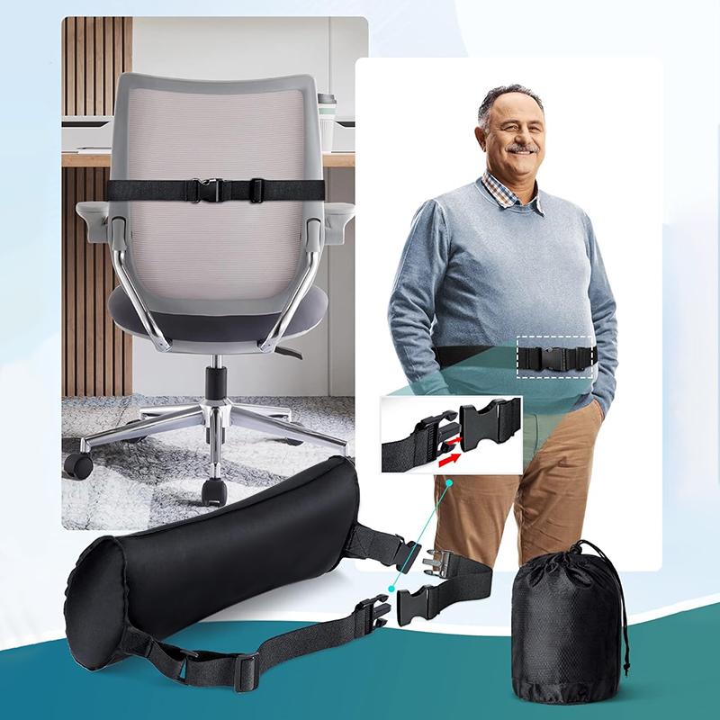 *_COMFEYA Inflatable Lumbar Pillow – Black_**_Precise Lumbar Support:_*Designed to provide precise alignment and support to your lumbar spine, offering relief from various causes of back pain such as inflammation, muscle issues, herniated discs, and strains.*_Effective Pain Relief:_*By axially stretching the muscles and dispersing skeletal gap pressure, this inflatable lumbar support pillow promotes natural stretching and improved blood circulation, effectively relieving lower back pain and enhancing sitting posture.*_Soft and Comfortable:_*Crafted with skin-friendly milk silk and TPU material, this lumbar support pillow is both comfortable and crease-resistant. The solid colour sponge filling ensures quick rebound and enhanced lumbar protection.*_Customizable Fit:_*The insert buckle design and wider fixed belt allow for easy adjustment to accommodate different waist circumferences. This precisely fills the waist gap, conforms to the waist curve, and targets the specific pain points for optimal support.*Technical Specifications**_Colour:_* Black*_Material:_* Polyester + TPU*_Size:_* 38×11×19 cm*_Weight:_* 0.49kg*_Package Contents:_*1 x COMFEYA Inflatable Lumbar Pillow1 x Storage Bag