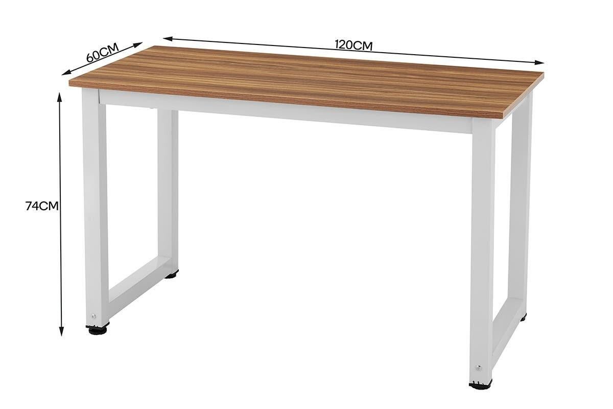 Freshen up your home office space with the minimalist charm of this elegant study desk that helps to maximise your workspace in order to boost productivity.With its effortlessly charming style that elevates your home office interior and a spacious tabletop that provides ample room for all your office essentials, the *Ovela Glasgow Study Desk (Walnut/White)* makes the ultimate addition to your home office!*Maximise your productivity*This desk provides a spacious working area that comfortably fits a laptop, monitor, notebook and other office supplies all while helping keep your workspace free of clutter and holding everything you need to power through deadlines.*Refresh your office*Bring a touch of minimalist charm to your home office thanks to the elegant silhouette and understated colour palette that work together to create a beautiful desk that instantly refreshes your workspace and makes working from its comfort a delight!*Protect your floors*Featuring anti-slip floor protectors, you can enjoy greater peace of mind knowing that this study desk won’t scratch or cause damage to your floors, helping you keep them in pristine condition.*Made to last*Designed with a supportive and durable powder coated steel frame, that is resistant to both rust and scratches, you can be sure that this study desk will provide you with a sturdy place to work from for years to come.*Features** Maximise your home office space and productivity levels* Minimalist design complements any office interior* Durable wooden surface with melamine finish* Anti-slip floor protectors prevent damage to floors* Rust and scratch-resistant powder-coated steel frame* Easy to maintain – simply wipe it clean!*Specifications** *Dimensions:* 120 × 60 × 74cm* *Thickness:* Tabletop: 1.5cm* *Weight:* 17kg* *Colour:* Walnut/White* *Material:* Chipboard + Steel* *Maximum Load Capacity:* 120kg* *Overhang Lip Length:* 3cm