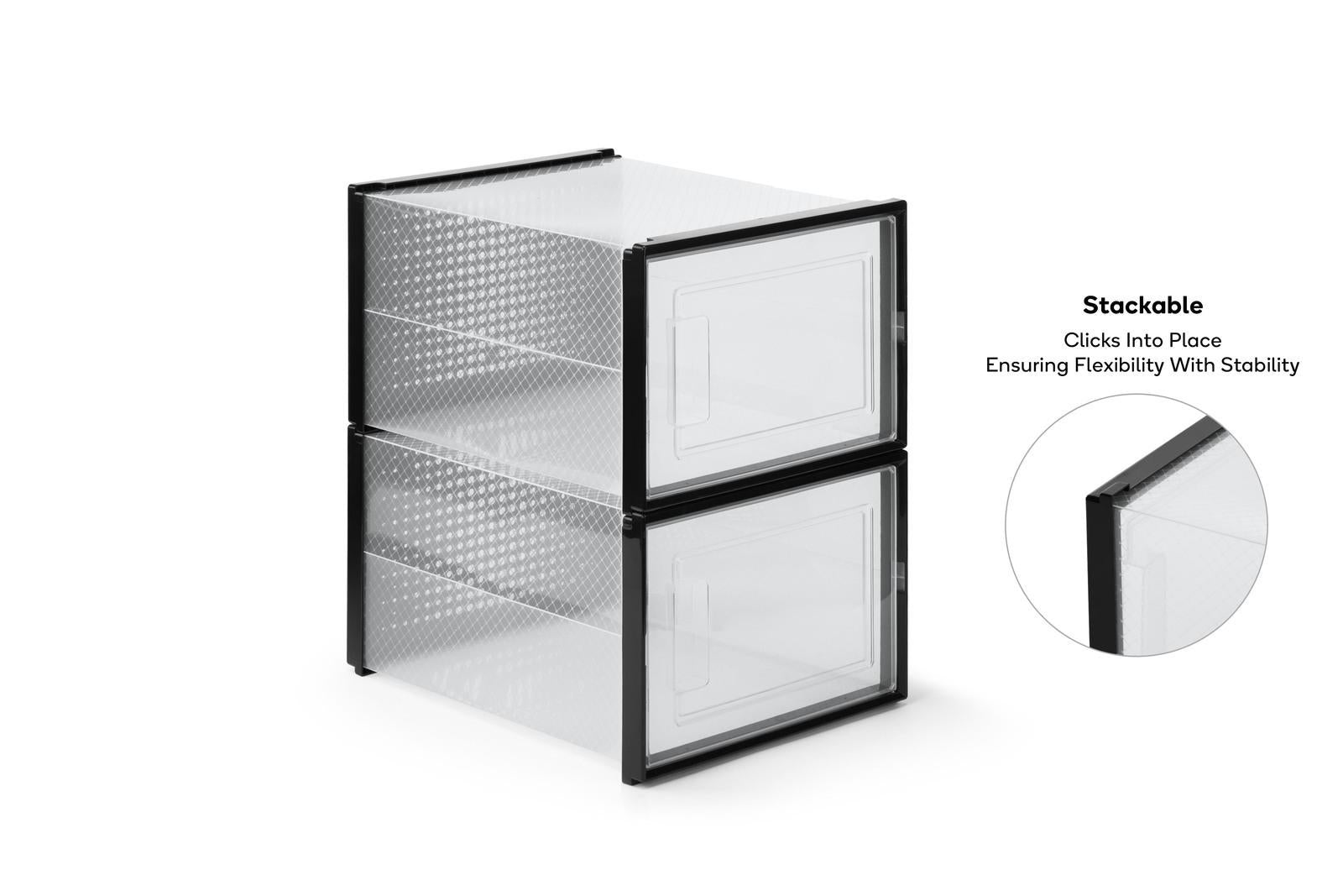 Ovela: Set of 12 Click Shoe Box-Large, Clear/Black