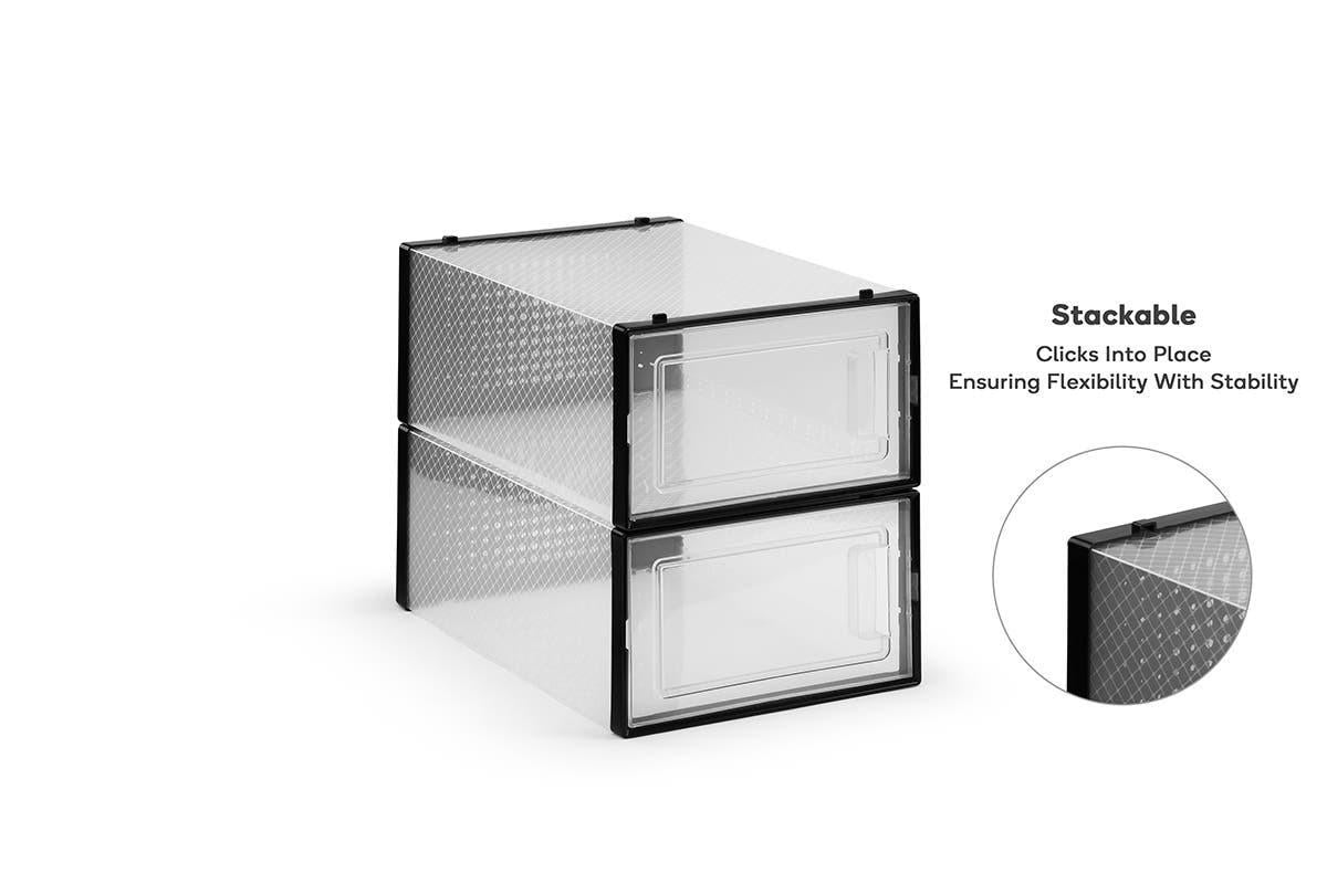 Ovela: Set of 12 Click Shoe Box (Small, Clear/Black)