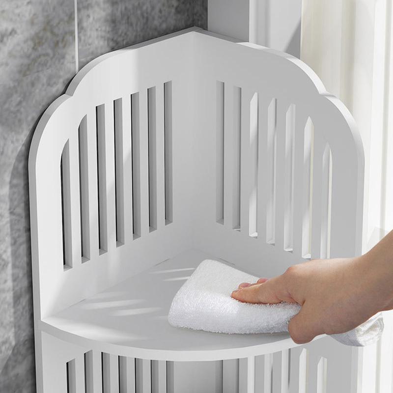 This shelf fits anywhere in your house, perfect size for a small bathroom, X – frame cut design with 3 tier storage shelves, it provides plenty of storage space.A multi-purpose Tier corner utility shelf can be used as a narrow corner bookshelf for the living room, a kitchen organizer, a night table for a bedroom and as a tiered plant stand on the balcony.*Specifications:** *Material:* PVC* *Dimensions:* 89×33×23cm* *Shape:* Rectangular* *Colour:* White