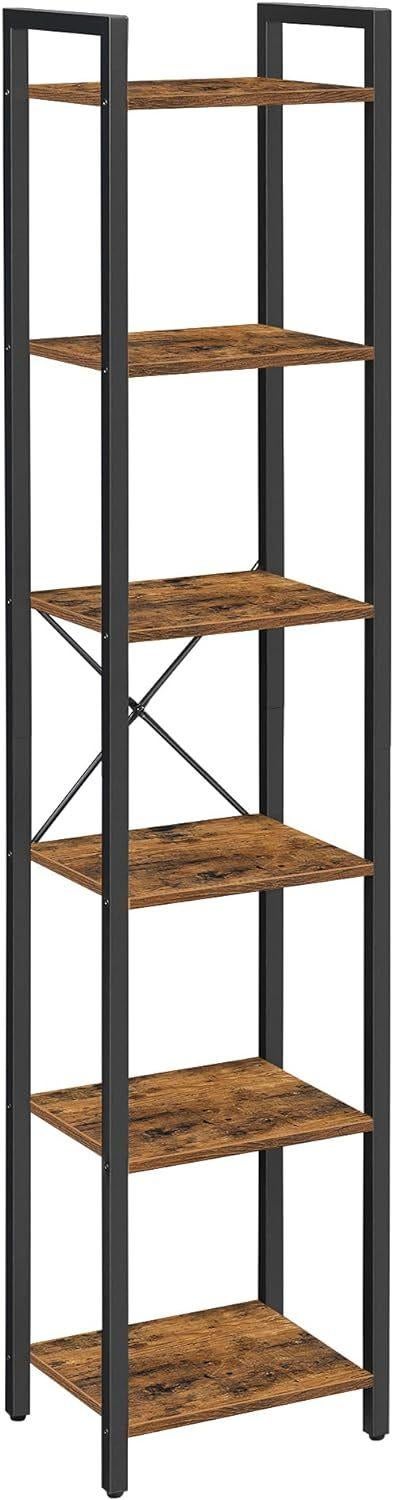 *_VASAGLE 6-Tier Bookshelf – Rustic Brown & Black_** True Story:Rustic brown boards, black steel, perfect symmetry…no, it's not science fiction, this industrial design bookshelf will indeed bring a timeless charm to your interior!* 6 Chapters:You have several passions? Separate your books, figurines, trophies, plants, and other decorations on the 6 shelves of this rack. Here's how to organise and highlight 6 different chapters of your life!* Superhero Materials:With particleboard and quality steel, this 40 × 30 × 187.5 cm bookcase will accompany you again and again in your favourite reading! Yes, you’ll have time to finish your entire manga collection!* Athletic Spirit: Balance?This piece of furniture has it! With adjustable feet, it’ll remain straight even on slightly uneven ground. And strength? Also! The X-shaped design enables it to lift up to 50 kg of novels or comics!* Easy to Read:The instructions provided! In addition, the parts of the shelving unit are numbered for easy assembly, so there’s more time to devour a new novel!*Specifications** Colour: Rustic Brown, Black* Material: Particleboard, Steel* Product Size: 40 × 30 × 187.5 cm (L x W x H)* Product Weight: 11.5 kg* Max. Total Static Load Capacity: 50 kg*Package Contents** 1 x Bookshelf* 1 x Assembly Kit* 1 x Anti-Tip Kit* 1 x Instructions*VASAGLE Notes*Children are not allowed to climb or play on the product for safety reasons.Please attach the product to the wall with the included antitip kit for safety.*WARRANTY:*Mighty Ape offers 1 Year Warranty. This warranty covers all manufacturing faults or defects. It does not cover wear, tear, or damage caused by use, accident, or failure to follow care instructions. The warranty is valid for 1 Year from the date of the order and is available to the original purchaser of the product only.*About Vasagle Furniture:*Nice-looking, well-made, and budget-friendly furniture is available for all families. Choose your favorites and reinvigorate your home with ease.
