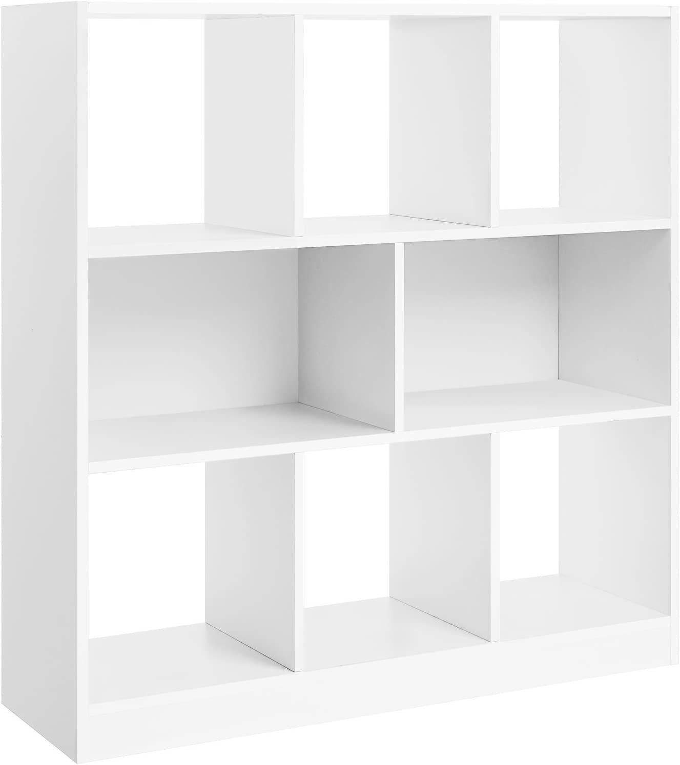VASAGLE Wooden Free Standing Bookcase with Open Cubes and Shelves – White* *SPRUCE UP YOUR SPACE*Don't sacrifice style when adding storage to your home; this modern bookcase in white finish offers the right mix of style and efficiency to keep your book collection* *ROOMY & PRACTICAL*97.5 × 30 × 100 cm (W x D x H), bookshelves have enclosed shelf and open cubbies that you can fill books, souvenir and décor in a variety of ways and with easy access* *MORE SECURED*Comes with an anti-tipping device to stabilize & anchor the freestanding file organiser shelf for safety; 6 cm high skirting board keeps dust and pest out from under the unit* *EASY ASSEMBLY*All edges have been sealed, comes with labeled parts & illustrated instructions; this storage unit is very easy to assemble*Features** A Must-have in Your HomeNo matter what style of your home decor, whether it is country style, vintage, industrial or shabby chic, our simple and modern free-standing shelf will definitely complement it.* Durable for Years to ComePremium particle board provides a high load capacity. Veneered surface is scratch and wear resistant, easy to clean.* Satisfy All Your Storage NeedsPlace this bookshelf in the nursery to store your children's textbooks or place it in the living room next to your reading chair or just put it in your bedroom.*Specifications** Colour: White* Material: Particle Board With Melamine Veneer, 3 mm MDF Back Board* Product Size: 97.5 × 30 × 100 cm (W x D x H)* Weight: 23.7 kg* Load Capacity: Each cube (6 x): 15 kg, Middle shelf (2 x): 25 kg, Top board: 50 kg*Package Contents** 1 x Bookshelf* 1 x Bag of fittings* 1 x Anti-tipping device* 1 x Instructions (EN, DE, FR, ES, IT)*VASAGLE Notes** Clean the bookcase with a damp cloth and wipe dry.* Please fix the product to the wall with the anti-toppling device for safety.*WARRANTY:*Mighty Ape offers 1 Year Warranty. This warranty covers all manufacturing faults or defects. It does not cover wear, tear, or damage caused by use, accident, or failure to follow care instructions. The warranty is valid for 1 Year from the date of the order and is available to the original purchaser of the product only.*About Vasagle Furniture:*Nice-looking, well-made, and budget-friendly furniture is available for all families. Choose your favorites and reinvigorate your home with ease.