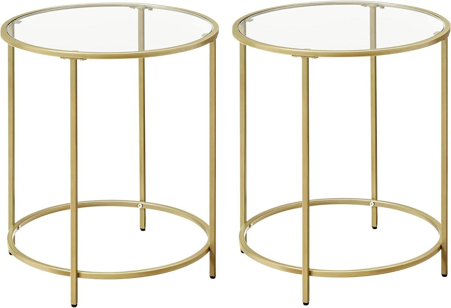 VASAGLE Set of 2 Round Metal Side Tables with Tempered Glass - Gold