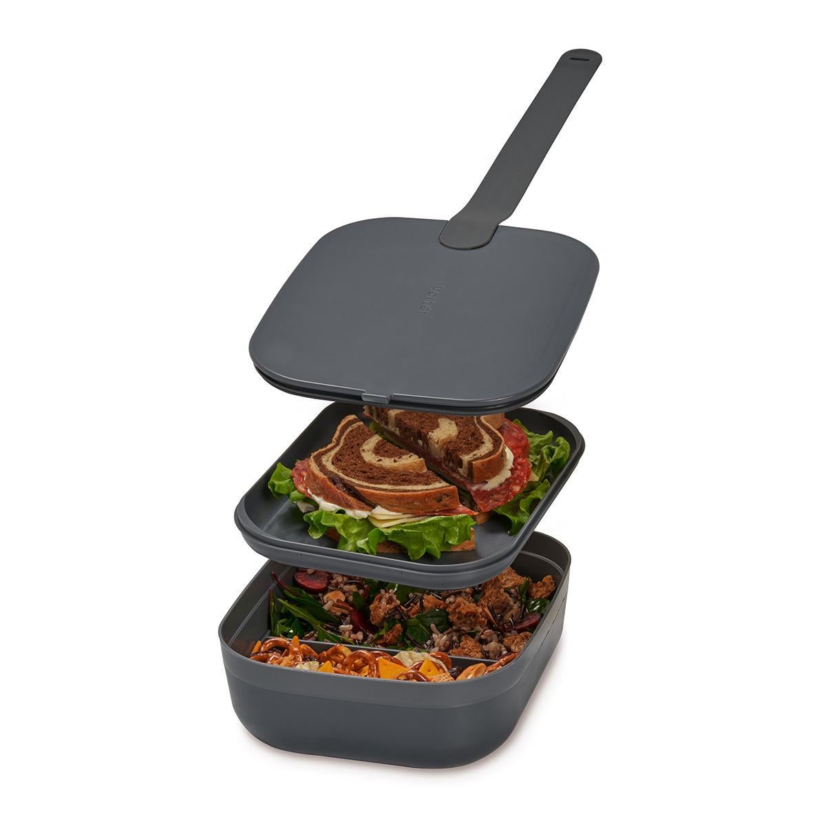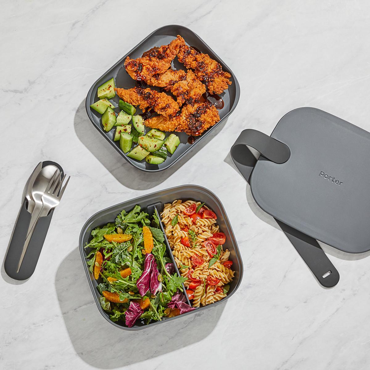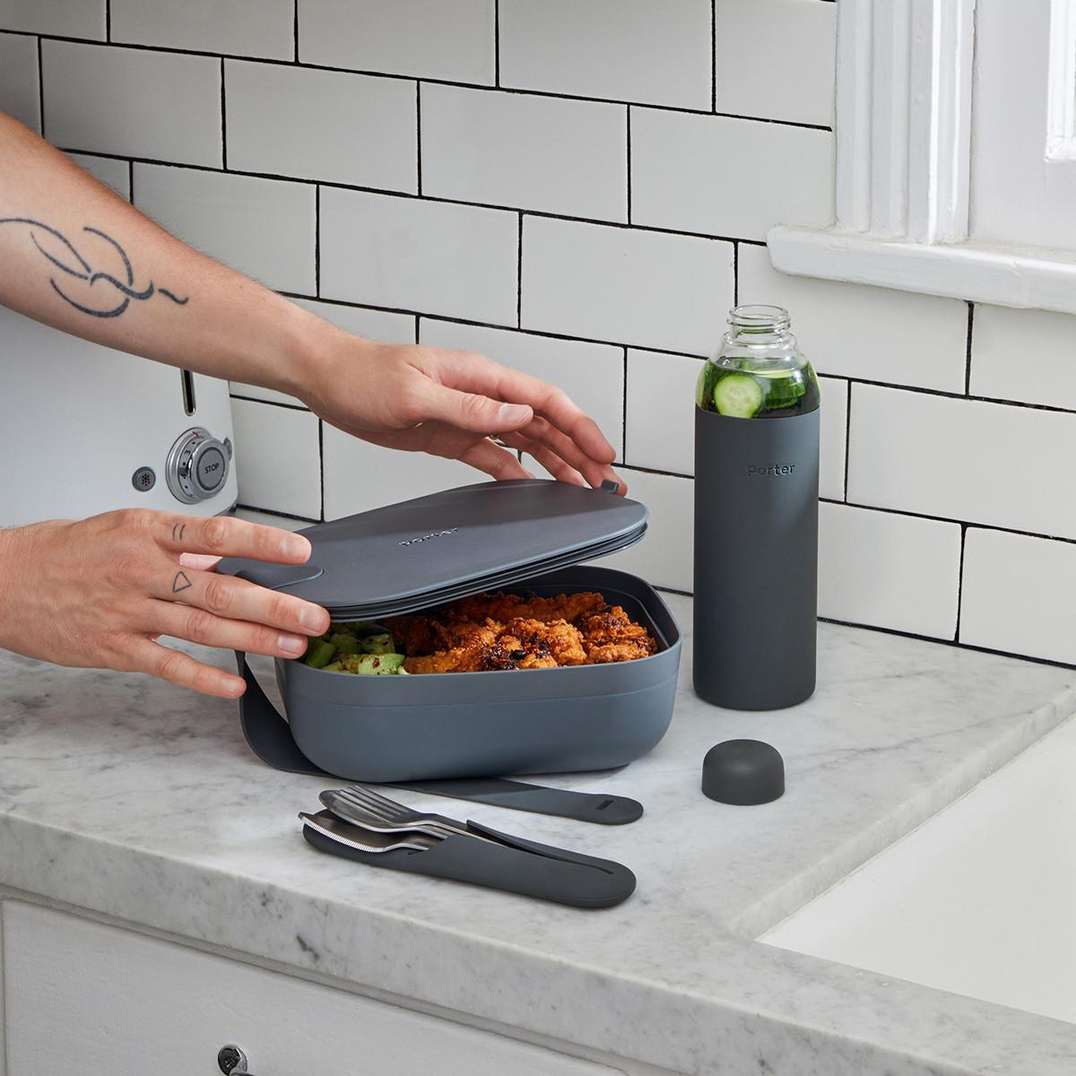 * Always be ready for a day out with the generously spacious 1.5L capacity lunch box – perfect for everything from weekday commutes to summer picnics.* 3 compartments to keep foods fresh, crisp and separated with space for salads, sandwiches and snacks.* Lightweight and durable, it sits comfortably in bags and backpacks, secured by a silicone strap for easy travel.Let's do lunch! Bring your meal, snacks and dessert in this stylish lunch container from W&P Porter. No more squishing sandwiches or compromising on your portable picnic charcuterie, there's plenty of space for everything from ice packs, juice boxes to cutlery so that every meal is as delicious and easy as can be.*_Features:_** 1L capacity bowl and 0.5L capacity removable tray divider to keep snacks and sides separate* BPA-free plastic and LFGB-certified silicone* Microwave-safe* Dishwasher-safe