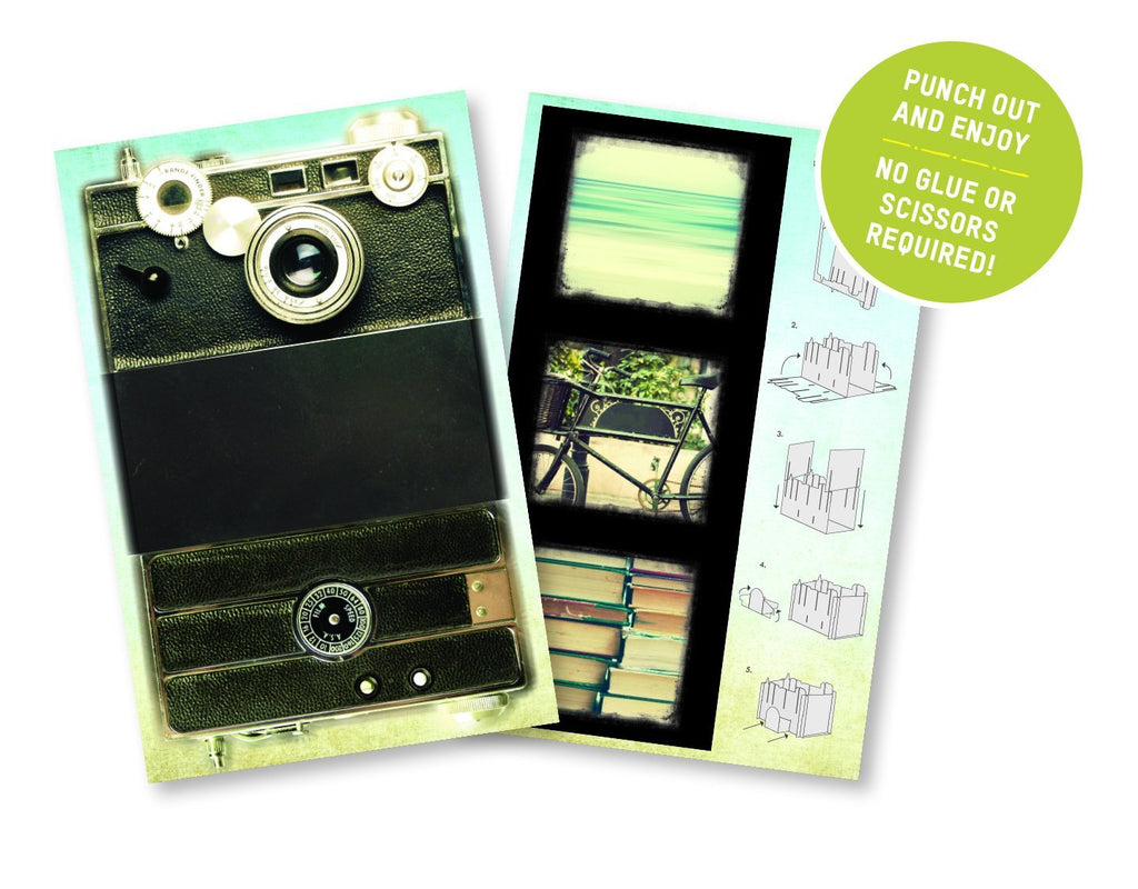 The durable cardboard pieces punch out and assemble in mere minutes—no glueor scissors required! A picture-perfect way to keep a desk tidy. Eye-catchingand functional, this vintage-inspired desk accessory will be an instant favoriteof camera enthusiasts.