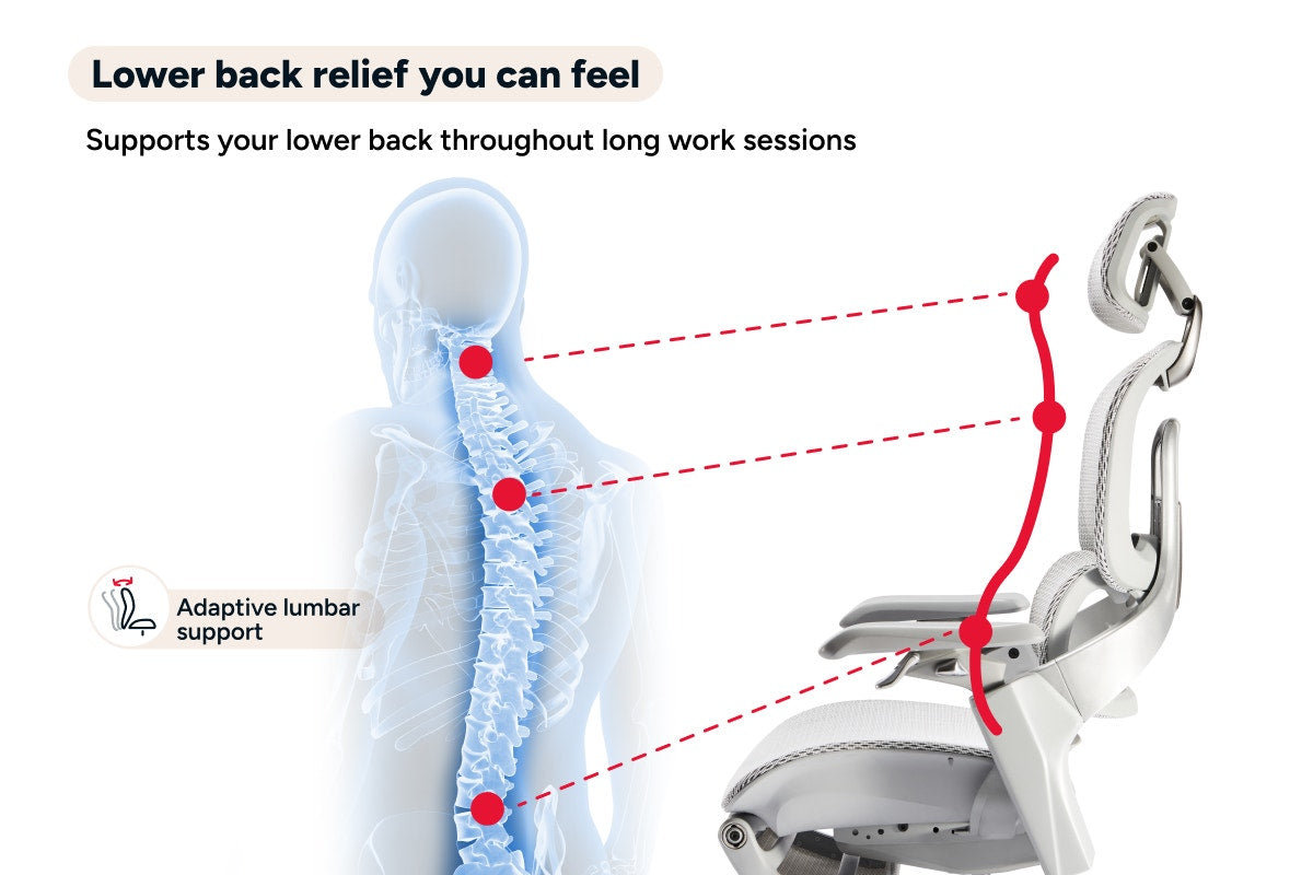p{font-weight:bold;font-size:1.2em}. Support that moves with youThe adaptive lumbar system dynamically follows the curve of your spine, offering continuous lower back support that reduces pressure and encourages a healthier seated posture, even during marathon workdays.