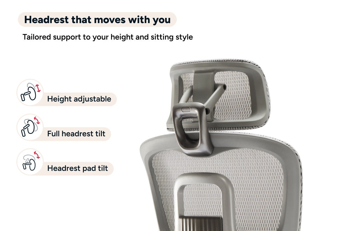 p{font-weight:bold;font-size:1.2em}. Tailored head and neck supportThe 3D adjustable headrest moves in height and tilt to perfectly align with your neck, easing upper-back tension and keeping you supported while you focus or lean back to reflect.