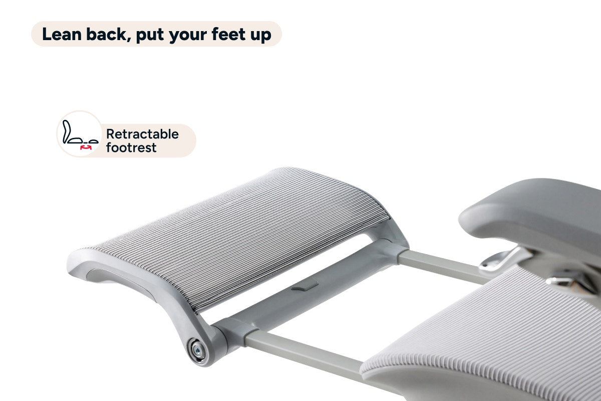 p{font-weight:bold;font-size:1.2em}. Recline, reset and rechargeLean back into a smooth 135° recline to ease pressure on your spine and reset your posture between tasks. Ideal for mindful moments, stretch breaks or recharging before your next meeting.p{font-weight:bold;font-size:1.2em}. Rest your legs, refresh your focusThe integrated footrest slides out smoothly to elevate your legs and improve circulation, perfect for decompressing between deep work sessions or making long days feel lighter.