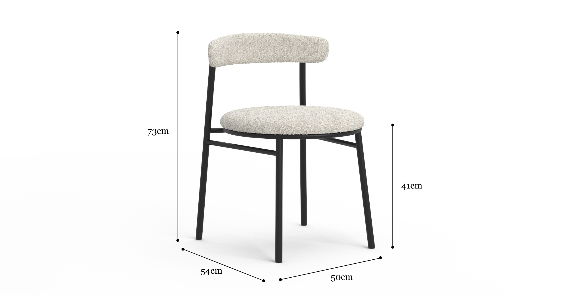 p{font-weight:bold;font-size:1.2em}. The Brosa™ Lancel Set of 2 Dining Chairs offers a modern yet timeless aesthetic, perfect for elevating any dining or living space. * *Streamlined curved design.* Ergonomic open back for enhanced support and elegance.* *Plush boucle upholstery.* Adds warmth and texture to any contemporary setting.* *Powder-coated metal frame.* Ensures long-lasting durability with a sleek finish.* *Semi-firm cushioned seat.* Offers all-day comfort and support for extended seating.* *Low-maintenance fabric.* Easy to clean, keeping it looking fresh with minimal effort.p{font-weight:bold;font-size:1.2em}. Designed for modern eleganceThe Lancel Dining Chairs feature a refined silhouette that fits seamlessly into modern or contemporary interiors. The curved open back offers ergonomic support while maintaining an elegant, streamlined look. These chairs are as comfortable as they are stylish, making them perfect for long dinners or gatherings.p{font-weight:bold;font-size:1.2em}. Comfort meets durabilityThe plush boucle upholstery brings warmth and texture to your space, while the powder-coated metal frame ensures these chairs remain sturdy and reliable for daily use. The semi-firm seat cushioning offers superior comfort, making them perfect for long-term seating without compromising style.p{font-weight:bold;font-size:1.2em}. Effortless maintenanceCrafted for modern living, the boucle fabric is low-maintenance and easy to care for. A simple spot clean is all it takes to keep these chairs looking their best, making them a practical choice for any dining or living space.