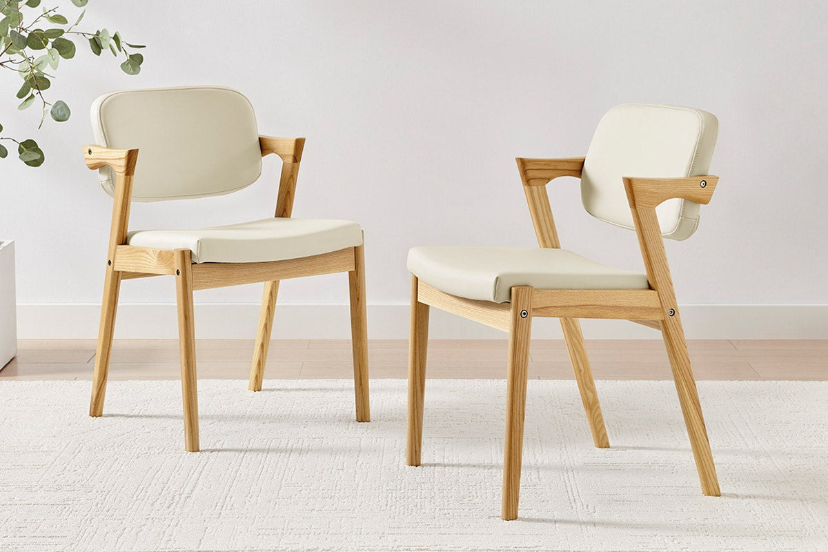 Set of 2 Matt Blatt Kai Replica Danish Dining Chairs (Cream PU/Ash)