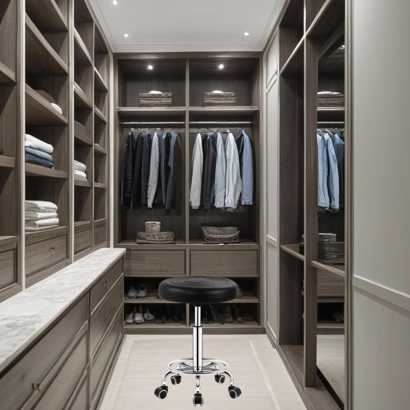 *_Adjustable Leather Chair – Black_**_Experience comfort and versatility_*This height-adjustable salon stool is designed for various settings, including salons, spas, offices, and homes. With a sleek design and practical features, it provides the perfect blend of style and functionality for any environment.*_Features:_**_Height Adjustable:_*The seat height can be easily adjusted from 44 cm to 55 cm, accommodating users of different heights. The seating diameter is a comfortable 31.5 cm, providing ample space for sitting.*_Comfortable Rolling Stool:_*This small yet flexible spa chair includes a footrest and is designed to take up minimal space while offering exceptional comfort. The waterproof leather surface makes it easy to clean and maintain, ensuring a hygienic seating option.*_Easy Assembly:_*The stool can be assembled in just 5 minutes, allowing you to set it up quickly and effortlessly.*_360-Degree Swivel Seat:_*The chair features universal wheels that allow for easy mobility on hard floors while being safe for soft flooring. The 360-degree swivel seat enables smooth rotation, enhancing accessibility and convenience.*_Specifications:_**_Colour:_* Black*_Material:_* Metal + Leather*_Package Size:_* 35 × 35 × 20 cm*_Weight:_* 3.22 kg*_Package Contents:_*1 x Adjustable Leather Chair1 x Screw Set1 x Screwdriver1 x User Manual